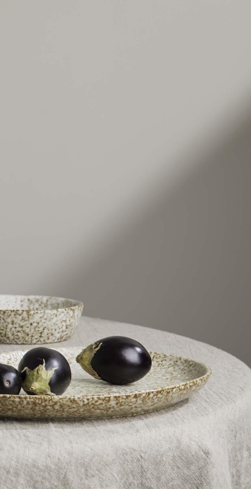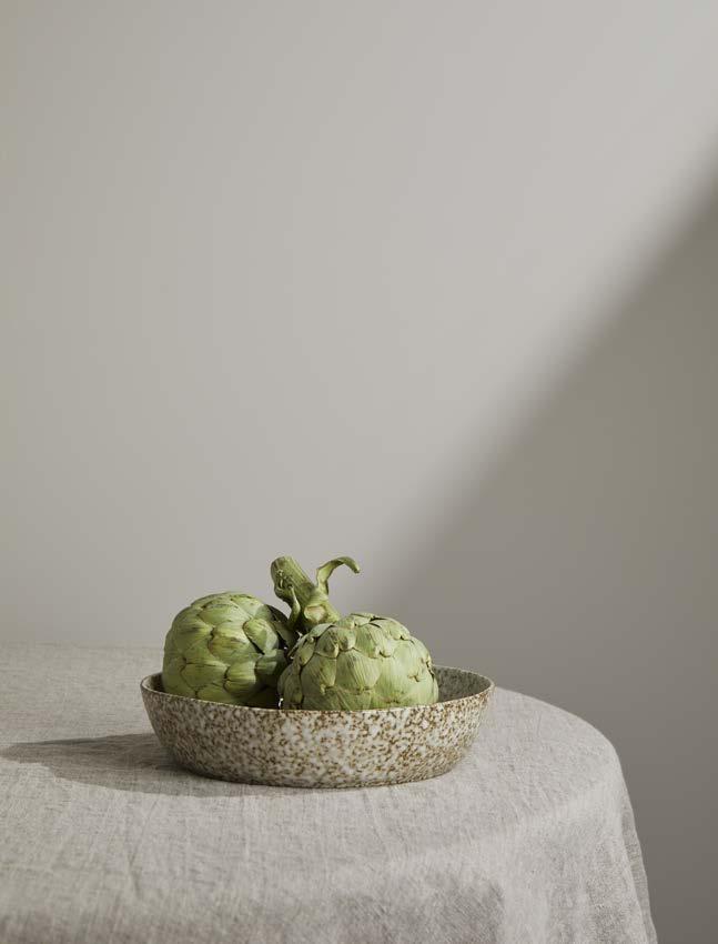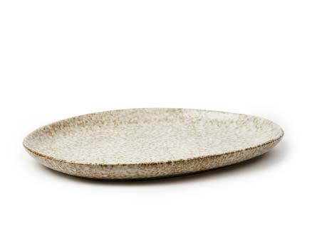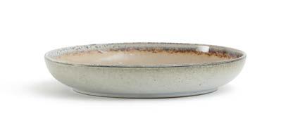 Herlig serveringsskål i steingods med en høyere, håndlaget kant som er elegant ujevn. Perfekt til en deilig nudelsalat eller hvorfor ikke servere en pastarett? Tåler selvfølgelig oppvaskmaskin.