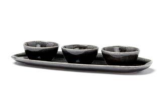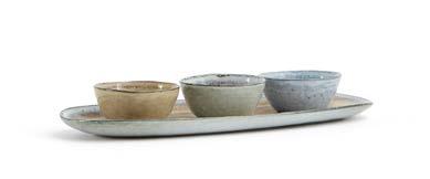 Fat i stentøy med tre små skåler. Ubegrensede anvendelsesområder - Tapas, dipp, snacks eller hvorfor ikke med hvert sitt varmelys? Fatet kan for eksempel også benyttes til annet småplukk eller salat. Str. fat: 35,5x14,2 skål: 8,5x4 cm. Emb. Gaveeske.