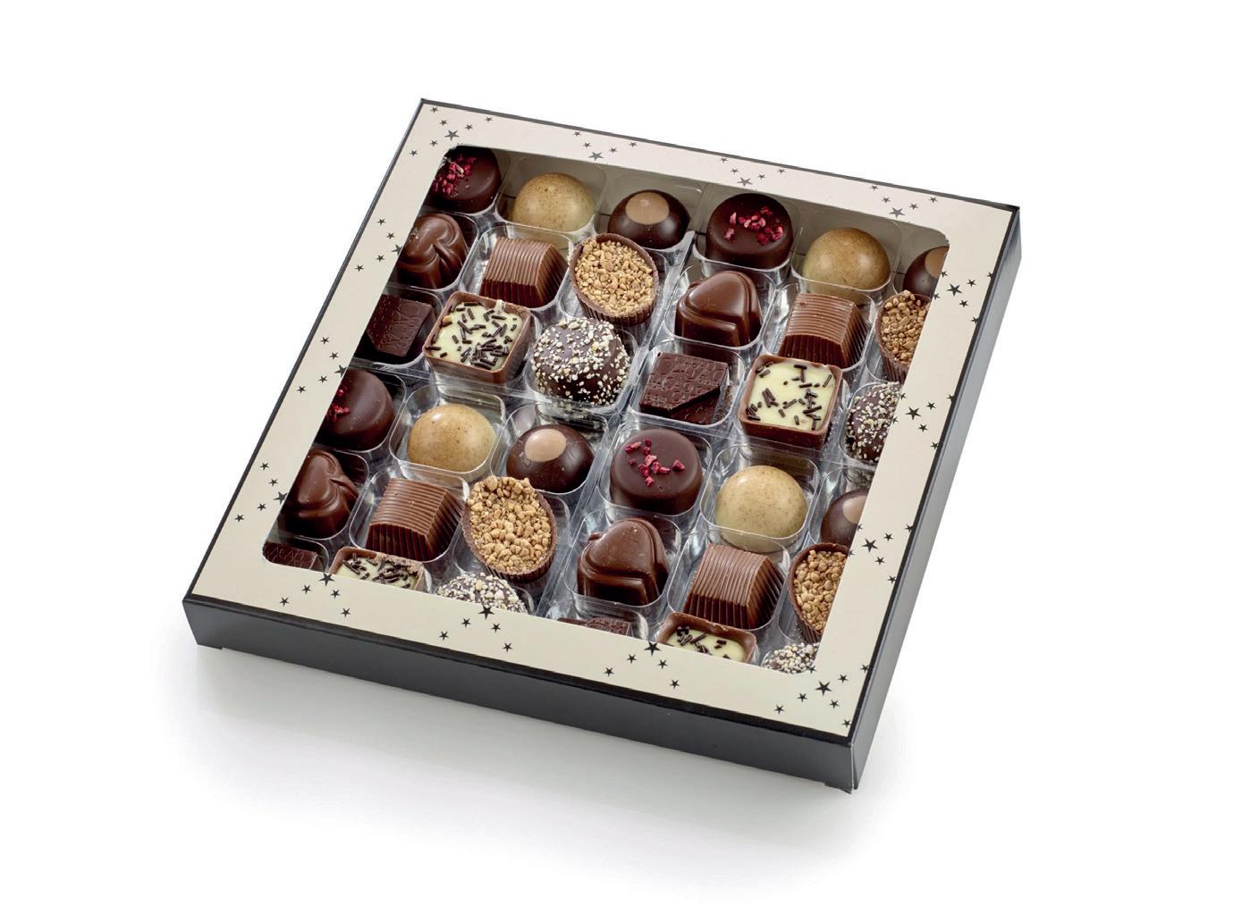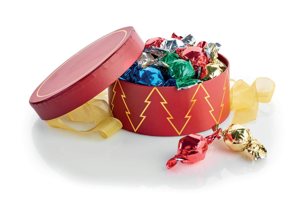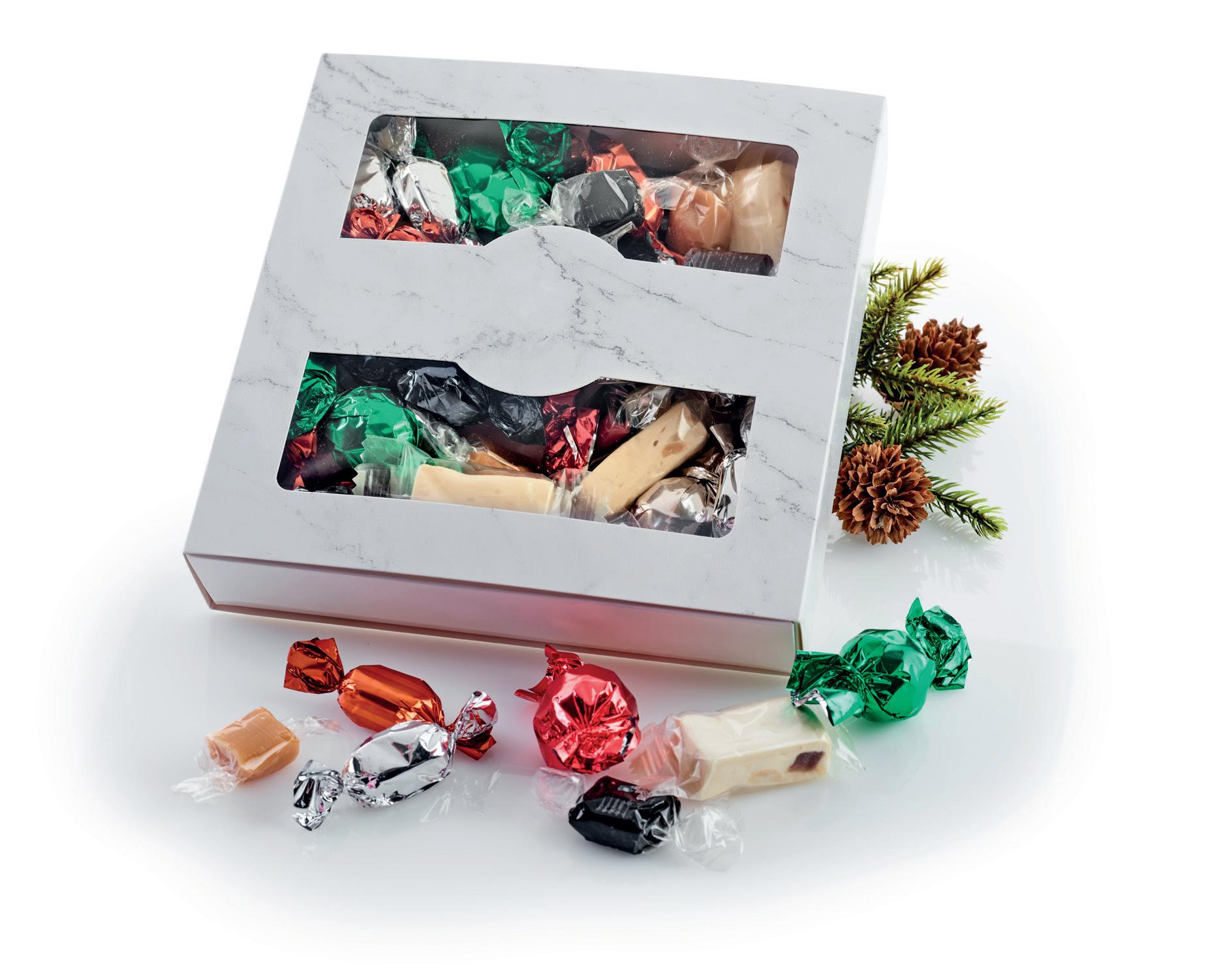 Surprisebox med Julemix (chokoladekugler, fransk nougat, chokomint, toffee m/chokolade og karameller), 500 g.