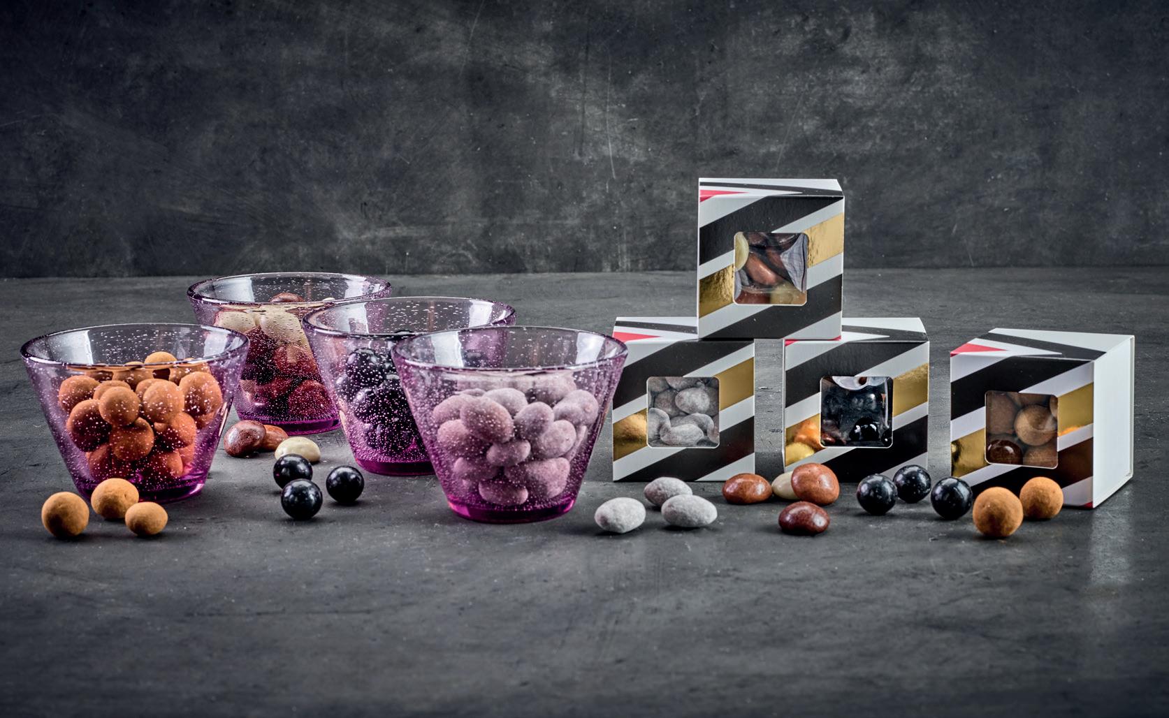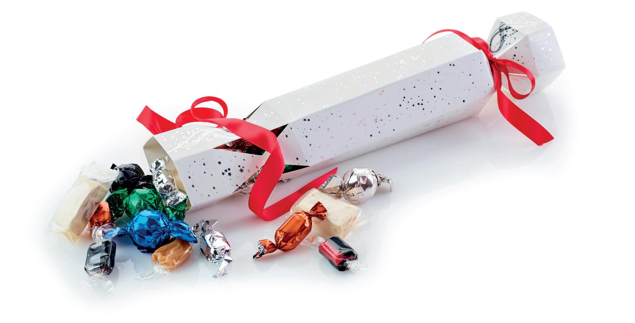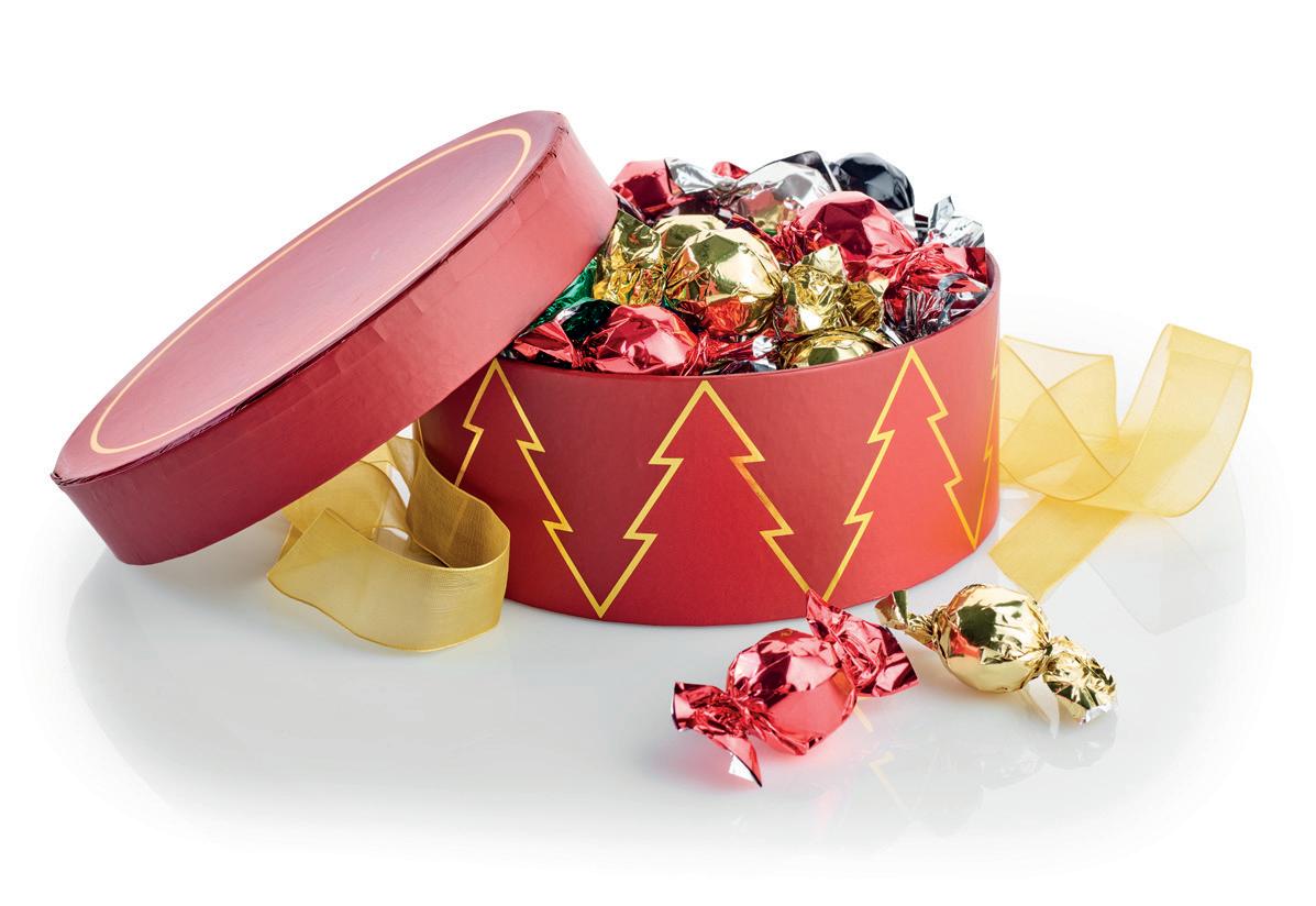 Surprisebox med Julemix (chokoladekugler, fransk nougat, chokomint, toffee m/chokolade og karameller), 500 g.