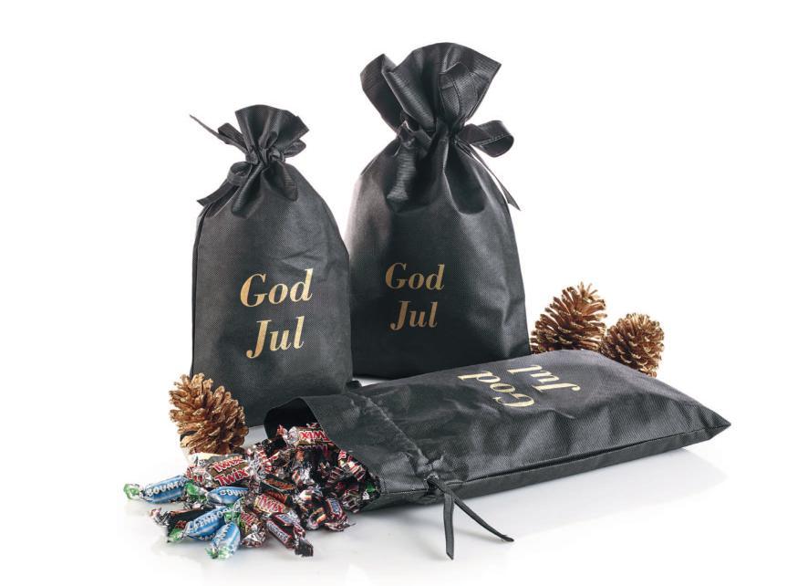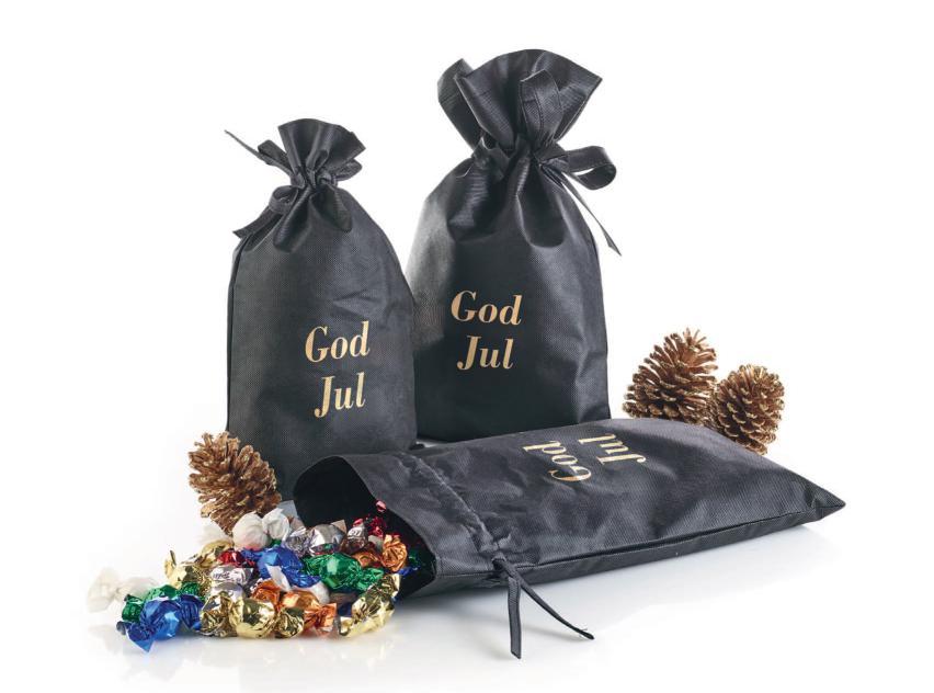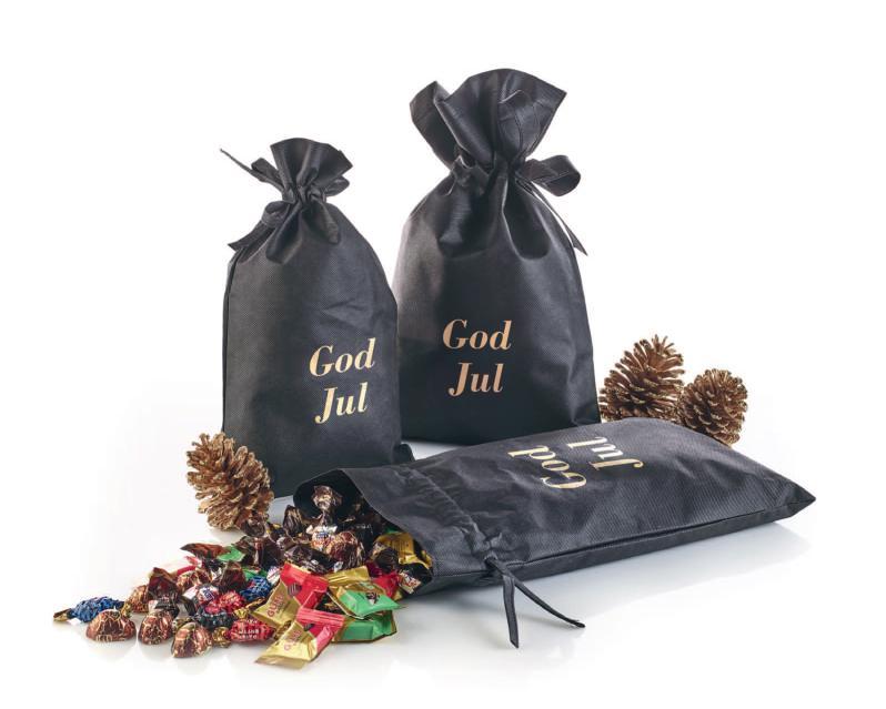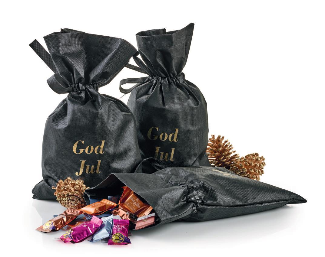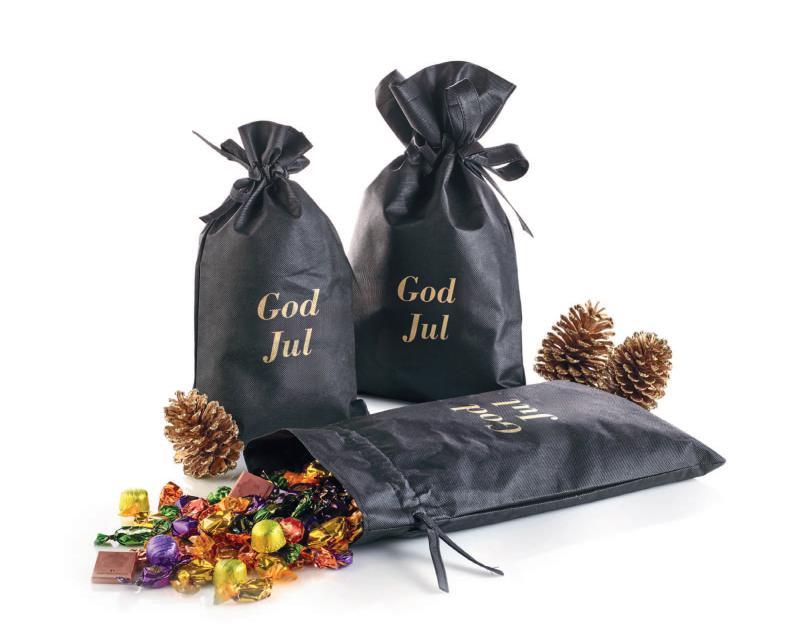 Sort stofpose - guldtryk “God Jul” med Julemix 2900 g.
