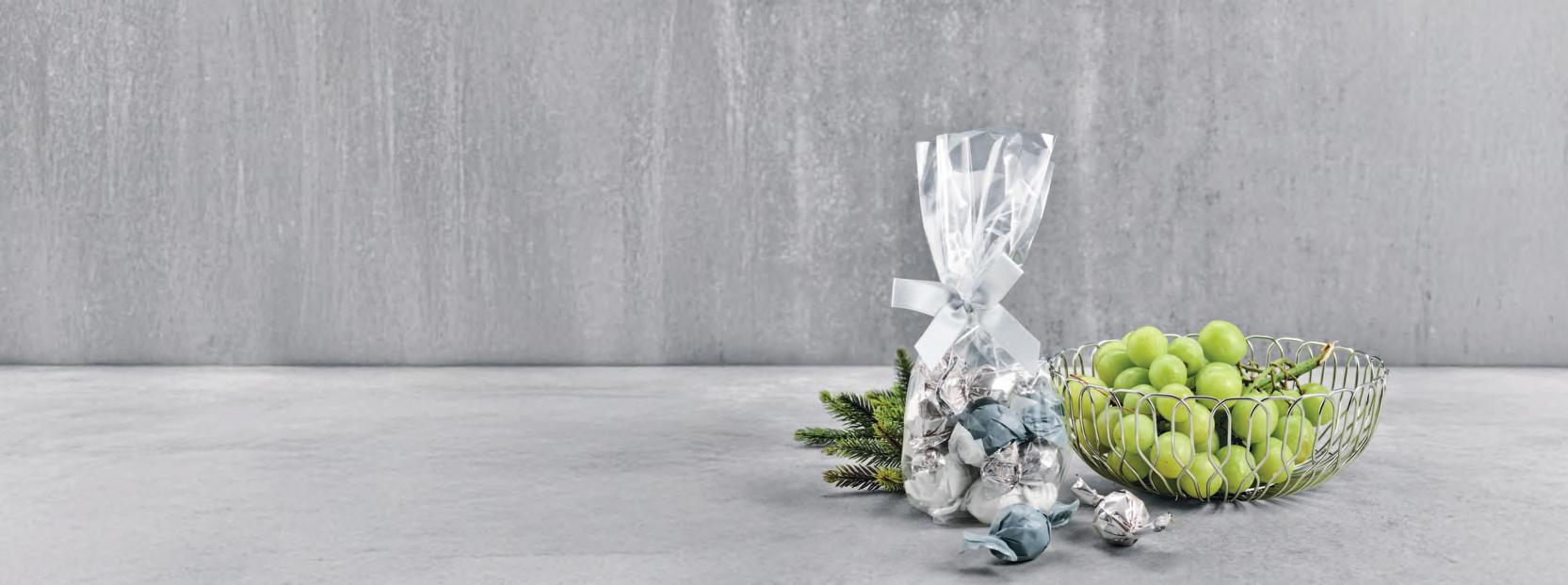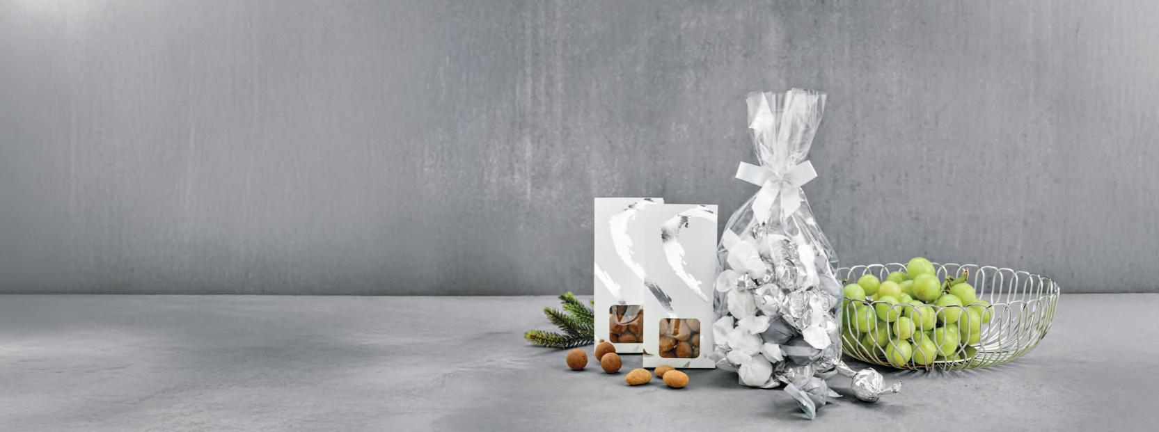 Pakket i cellofanpose m/sølv sløjfe