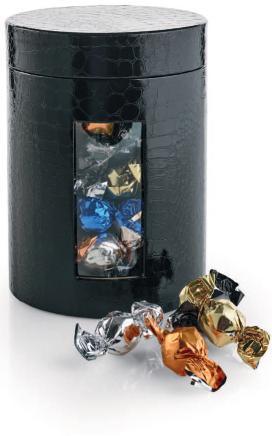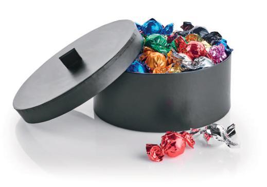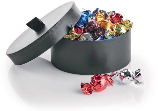 Pakket i sort stofpose med bjælder