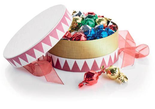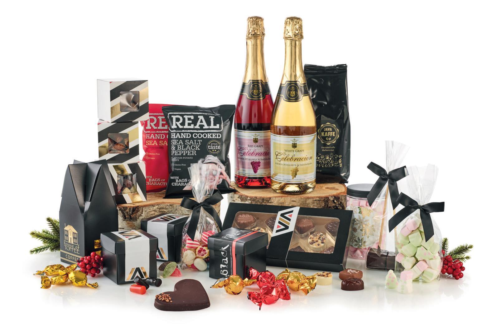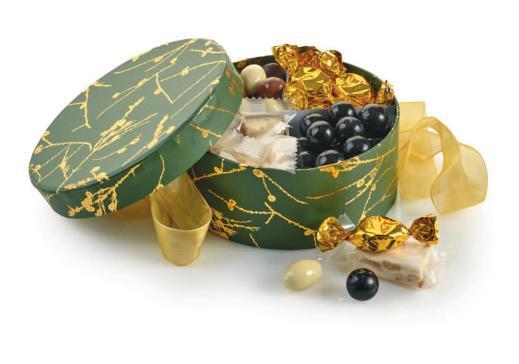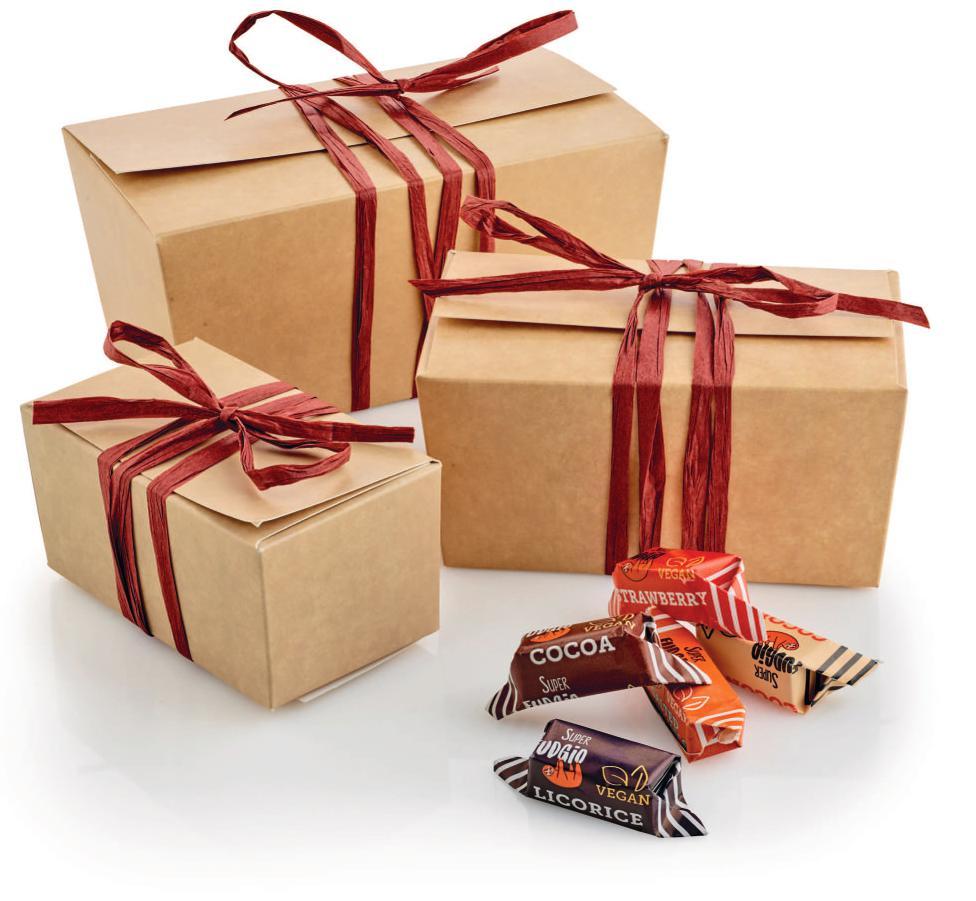 Pakket i cellofanpose m/guld sløjfe