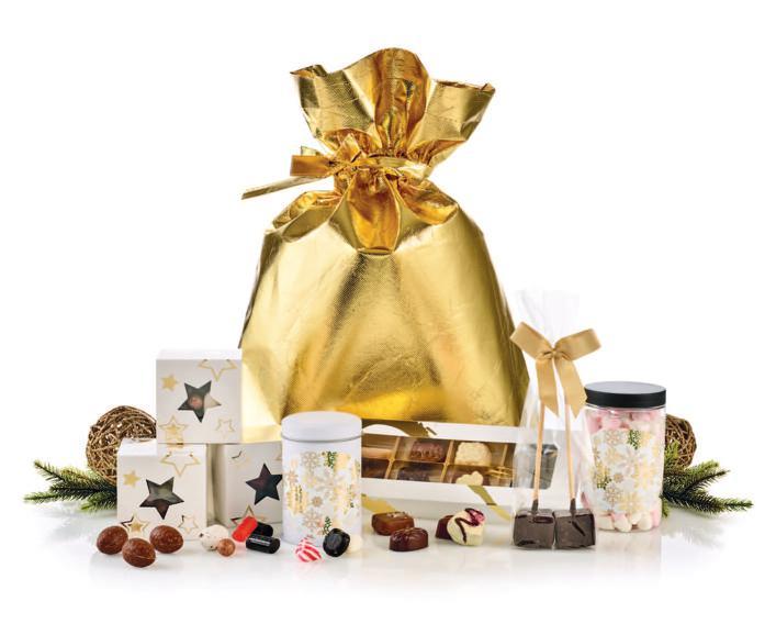 Pakket i guld stofpose
