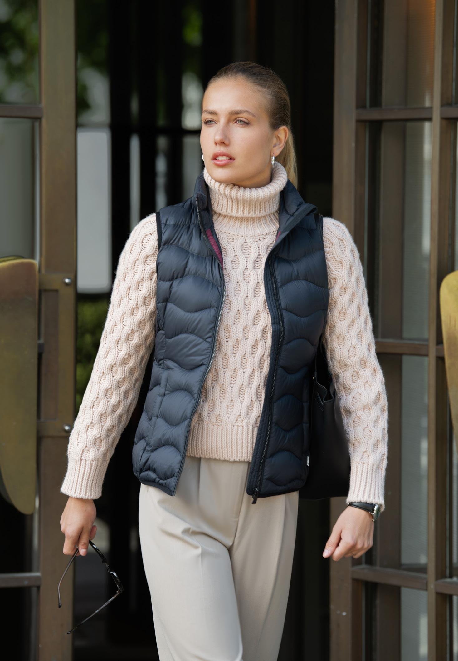 En behagelig helårsvest produsert av resirkulerte materialer. Hudson er en elegant vest quiltet i vannrett mønster med klassiske designdetaljer og en Sorona® Aura vattering, som gir en effektiv isolering, varme og lettvektsfornemmelse.