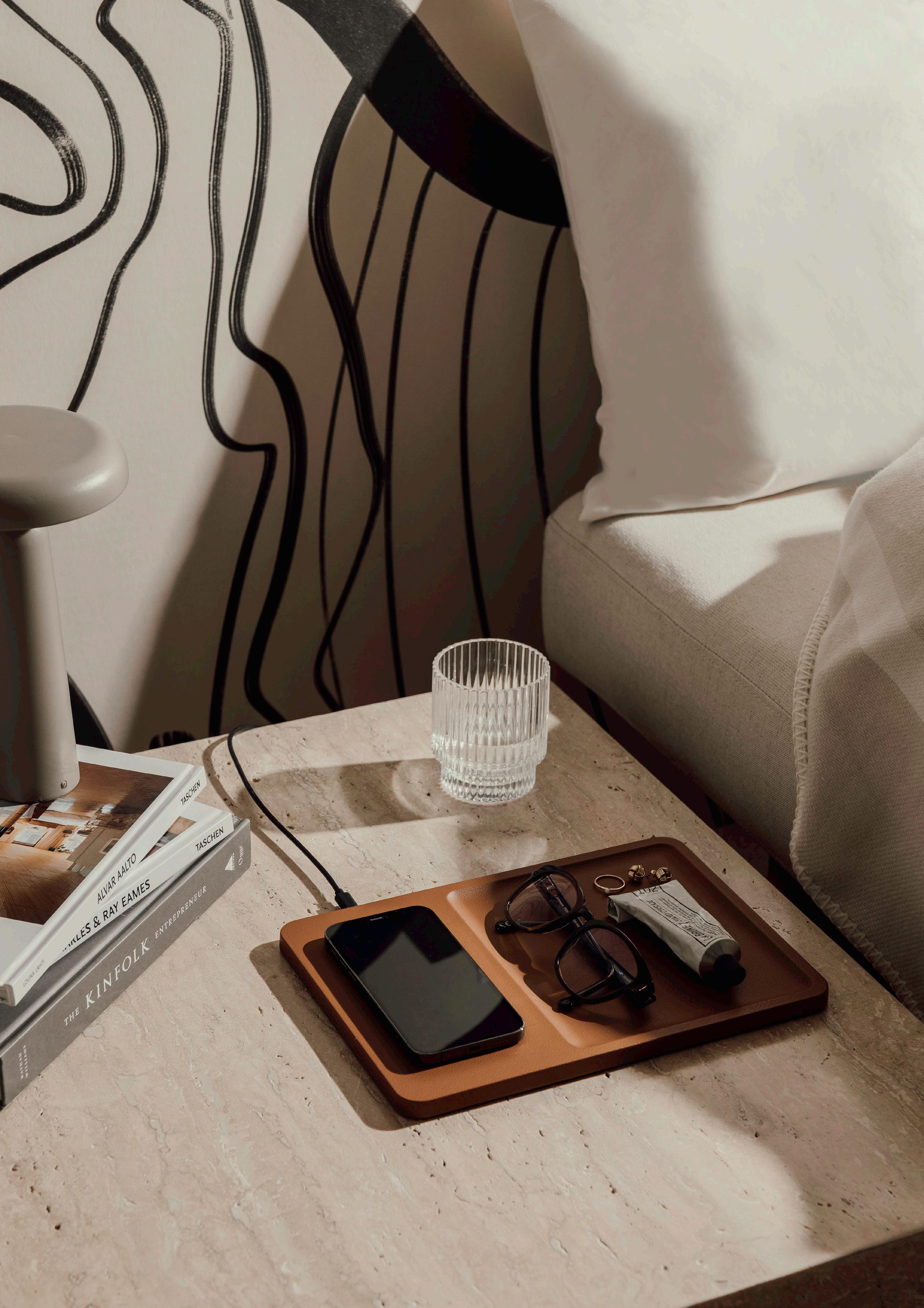 V3080001 svart • V3080009 brun • Resirkulert ABS • Trådløs utgang 15 W • Inputhastighet 9V/2A Min • 1 trådløs(e) ladecoil(s) • USB-C inngang • 120 cm ladekabel • Størrelse: 20 x 25 x 1,5 cm • Trykkteknikk: Ingen dekorasjon mulig.