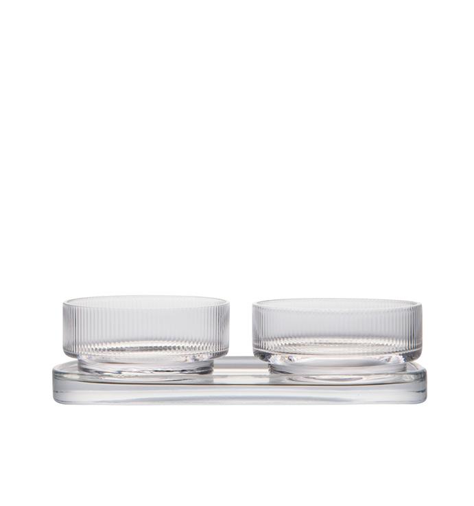 V2620605 blå • V2620619 off-white • Glass • Størrelse: 7,8 x Ø7,5 cm • Trykkteknikk: Tampotrykk