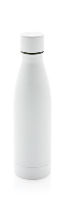 V4320303 hvit • V4320308 orange • V4320307 grønn • V4320305 marinblå • V4320322 grå • V4320301 svart • Resirkulert rustfritt stål • Volum 0,88 liter • Sølesikker • vakum isolasjon • Holder seg varm i 3 time • Holder seg kjølig i 16 time • Håndtak • Størrelse: 24,1 x Ø10,5 cm • Trykkteknikk: Tampotrykk