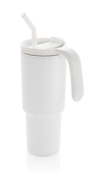 V4320403 hvit • V4320408 orange • V4320407 grønn • V4320405 marinblå • V4320422 grå • V4320401 svart • Resirkulert rustfritt stål • Volum 0,8 liter • Sølesikker • vakum isolasjon • Holder seg varm i 6 time • Holder seg kjølig i 24 time • Håndtak • Størrelse: 21,6 x Ø9,7 cm • Trykkteknikk: Tampotrykk