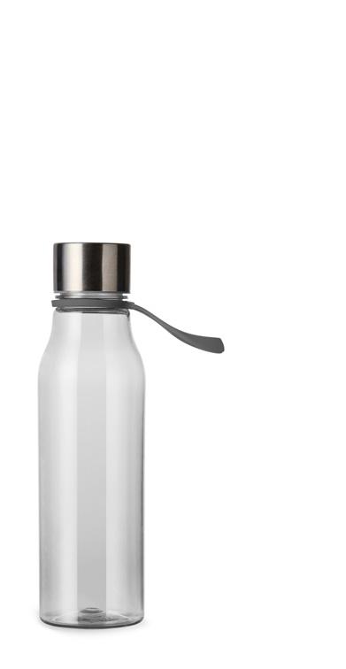 V4330700 gjennomsiktig • V4330701 svart • V4330719 greige • rPET • Volum 0,55 liter • Lekkasjesikker • Loop • Størrelse: 6,3 x 45 x 24,2 cm • Trykkteknikk: Tampotrykk 0.62 KG BENCHMARK: 0.74