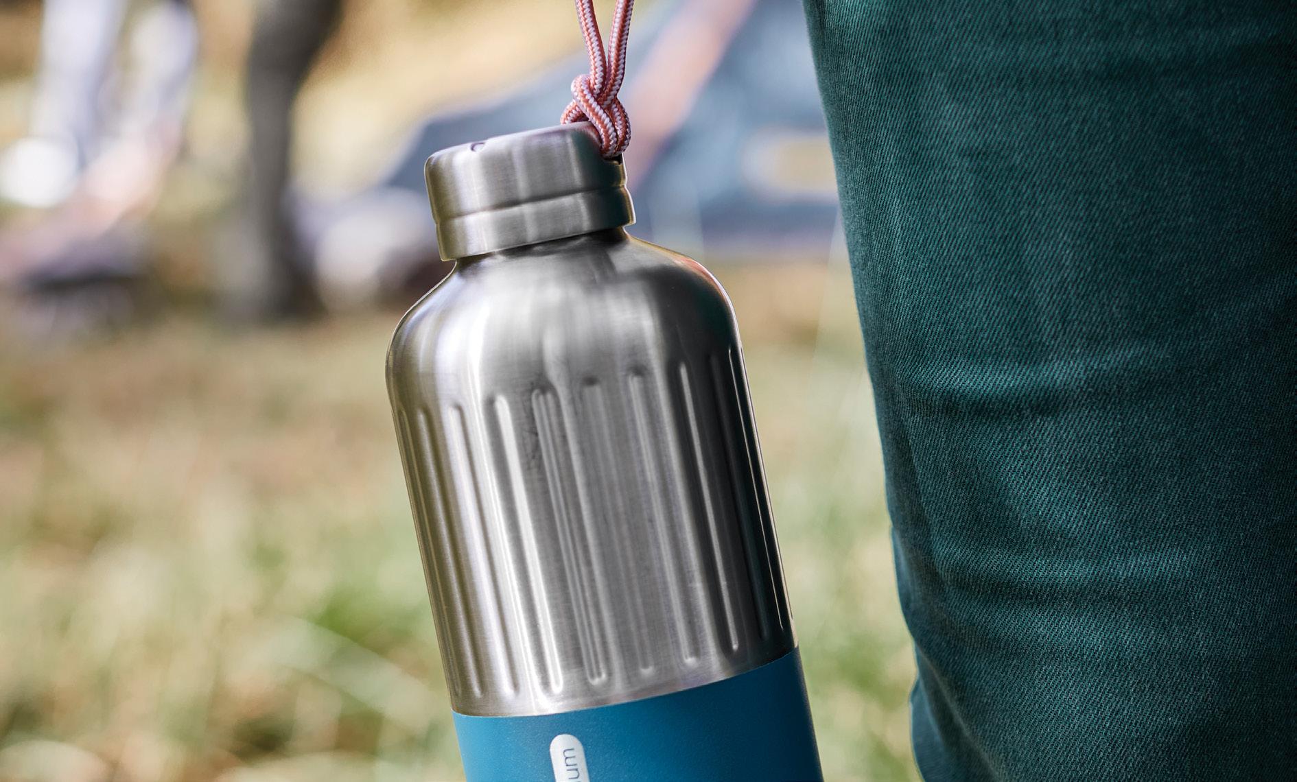 V4330500 gjennomsiktig • V4330505 blå • V4330525 marinblå • V4330507 grønn • V4330522 steinkull • rPET • Volum 0,8 liter • Lekkasjesikker • plast isolasjon • Loop • Størrelse: 27 x Ø7 cm • Trykkteknikk: Tampotrykk