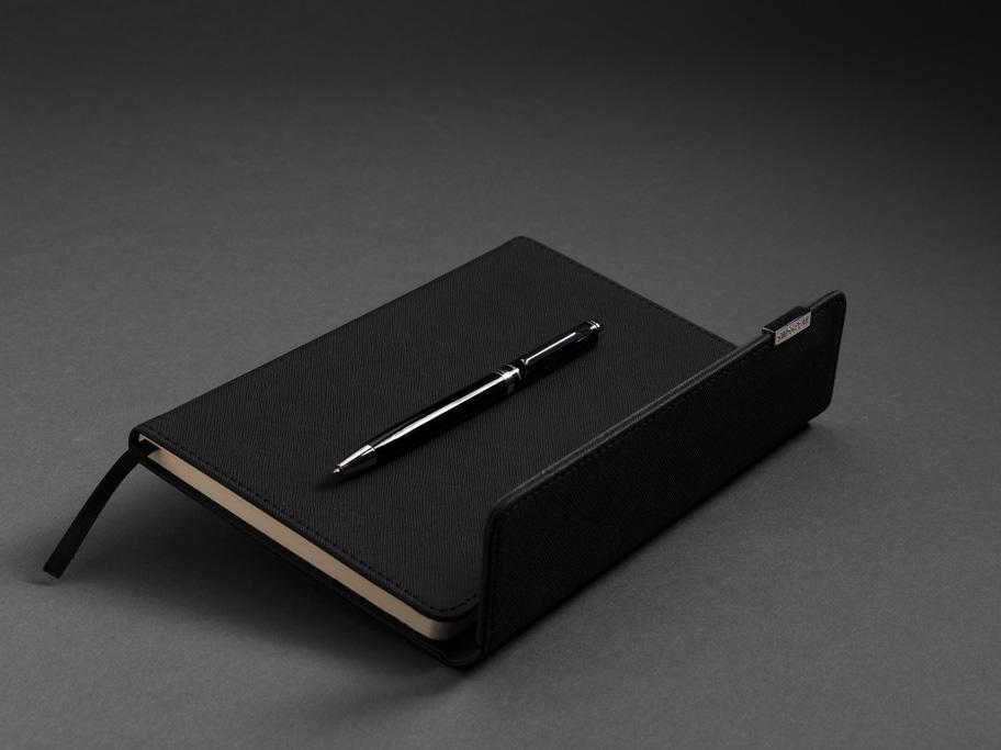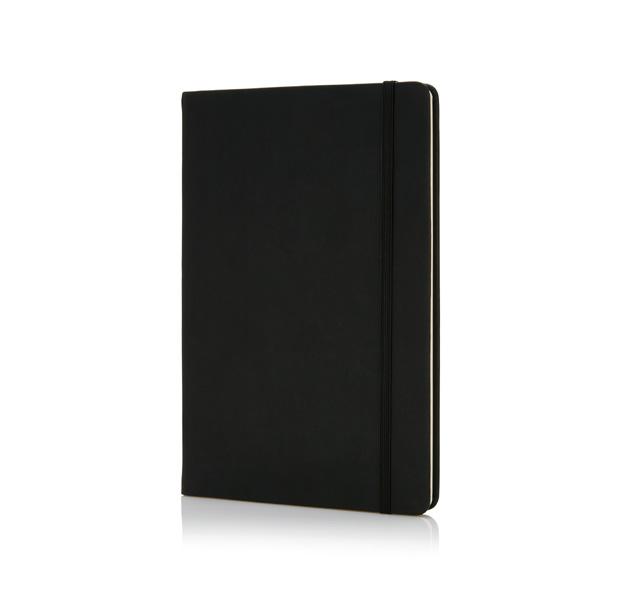 V7730501 svart • Resirkulert papir • A5-format • Inbundet • Linjesider • 160 sider • Hvit papir • 70 g/m2 papir • Størrelse: 22,5 x 35 x 2 cm • Trykkteknikk: Transfer 0.34 KG BENCHMARK: 0.37 KG