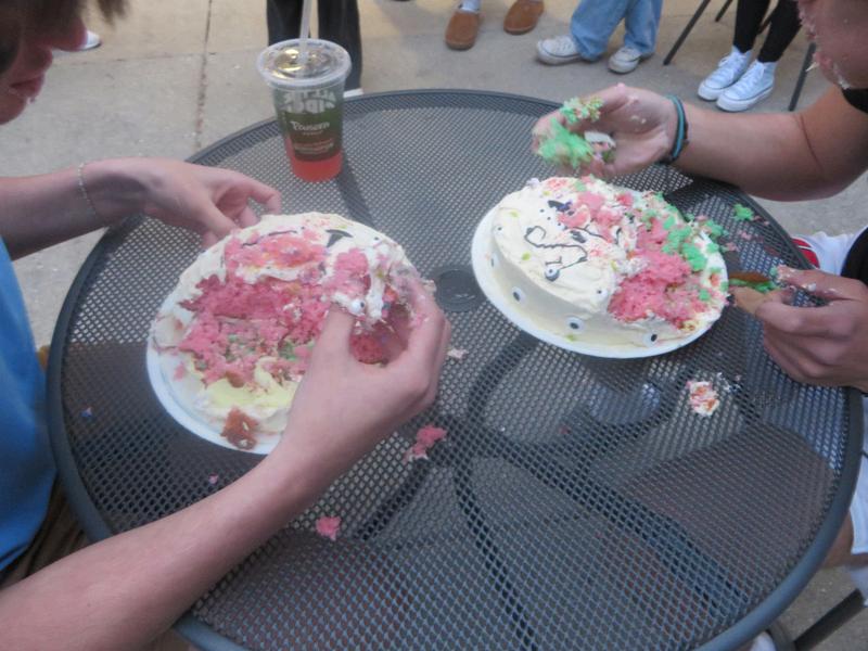 And lastly, to celebrate Rome’s birthday and finish out the week, we had a cake-eating contest and a fundraiser at Panera! Our president, Matthew, and our 2VP, Trevor battled it out to see who was cake-eating champion (cake was hand-crafted by Historian, Anika, and Treasurer, Shilpa!)