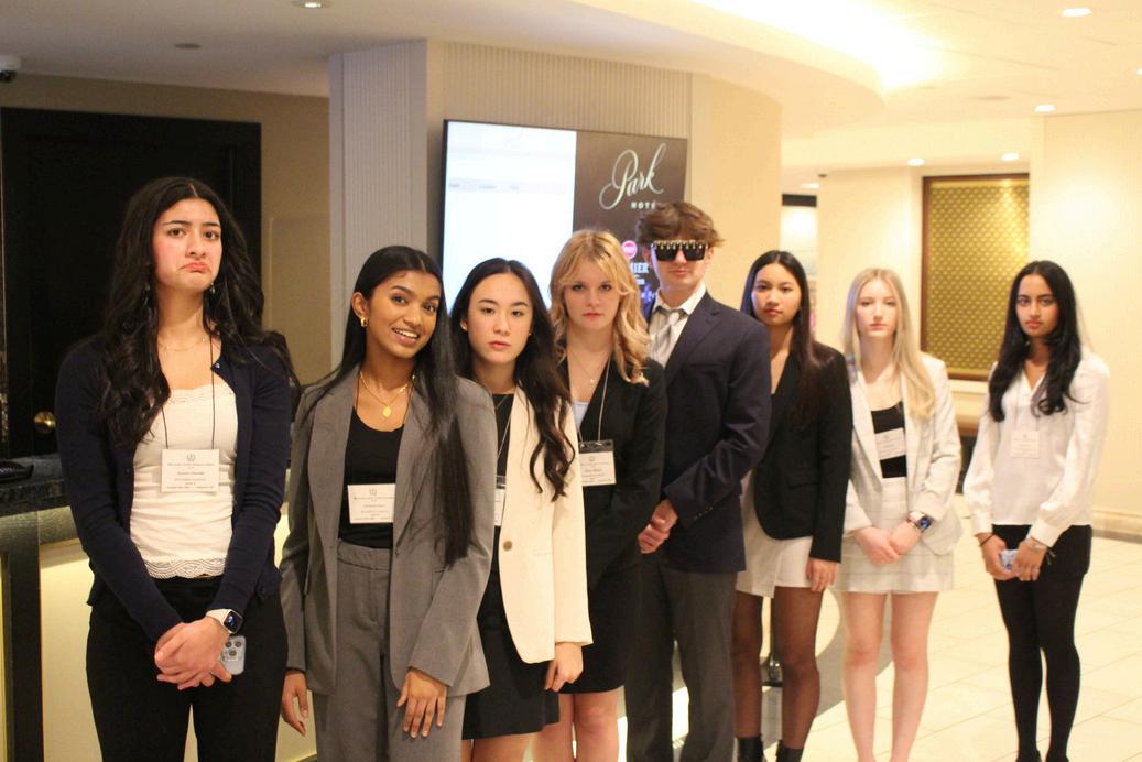 3rd place Novice Certamen team smiles for a pic with their dedicated coaches