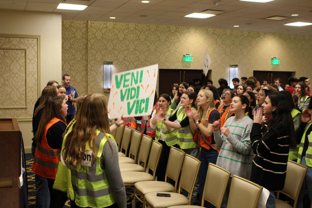 WJCL delegates cheering loud and proud at the procession WJCL officers holding up our DIY spirit! Peach for the Stars!