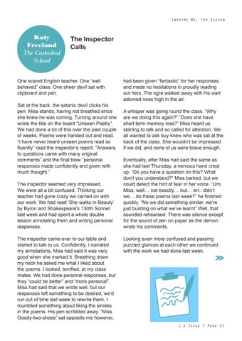 As ever, we are very grateful to all of those who have contributed to i.e. but most particularly to the young writers who took time to share their experiences in the English classroom with us – and to those of you who prompted them to participate.