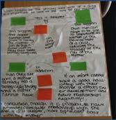 Dadansoddwyd yr ymatebion a’u rhoi i’r myfyrwyr ar ddechrau’r pwnc. Rhoddwyd copïau o siartiau bar iddynt i’w dehongli (a gynhyrchwyd gan Google Forms) a gall y canlyniadau gael eu hallforio i Excel. Cyfrifwyd cymedr a gwyriadau safonol hefyd i gymharu canlyniadau (Ffigur 2). Roedd data ansoddol hefyd yn cael ei rannu gyda’r myfyrwyr i’w helpu i ddewis llinellau allweddol y ddadl. Ar gyfer y brif ran o’r wers, rhoddwyd astudiaethau ymchwil a thystiolaeth arall i’r myfyrwyr ar gardiau a gofynnwyd iddynt drefnu’r rhain ar bapur bwrdd gwyn o dan un o’r penawdau a roddir. Roedd yn rhaid iddynt ddangos sut y gallai’r rhain gael eu hesbonio a’u cysylltu gyda’i gilydd mewn traethawd (Ffigur 3).
