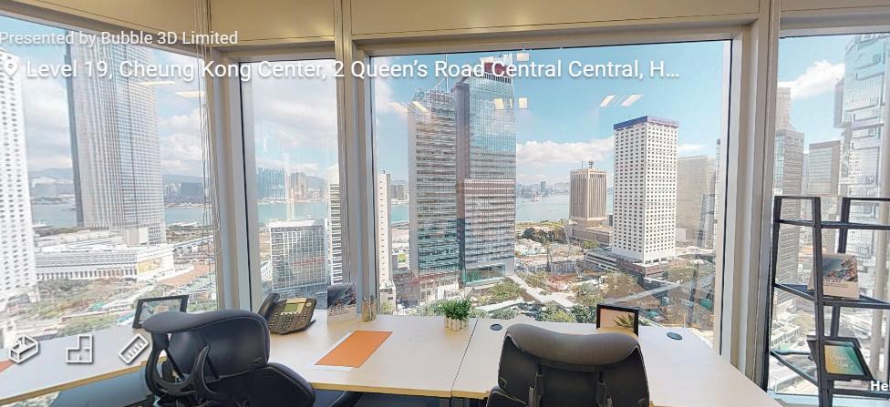 외벽이 유리 패널로 되어 있어 홍콩 전망을 360도 파노라마 로 볼 수 있습니다. 또한 3 미터의 높은 천정으로도 유명합니다. 주요 세입자
