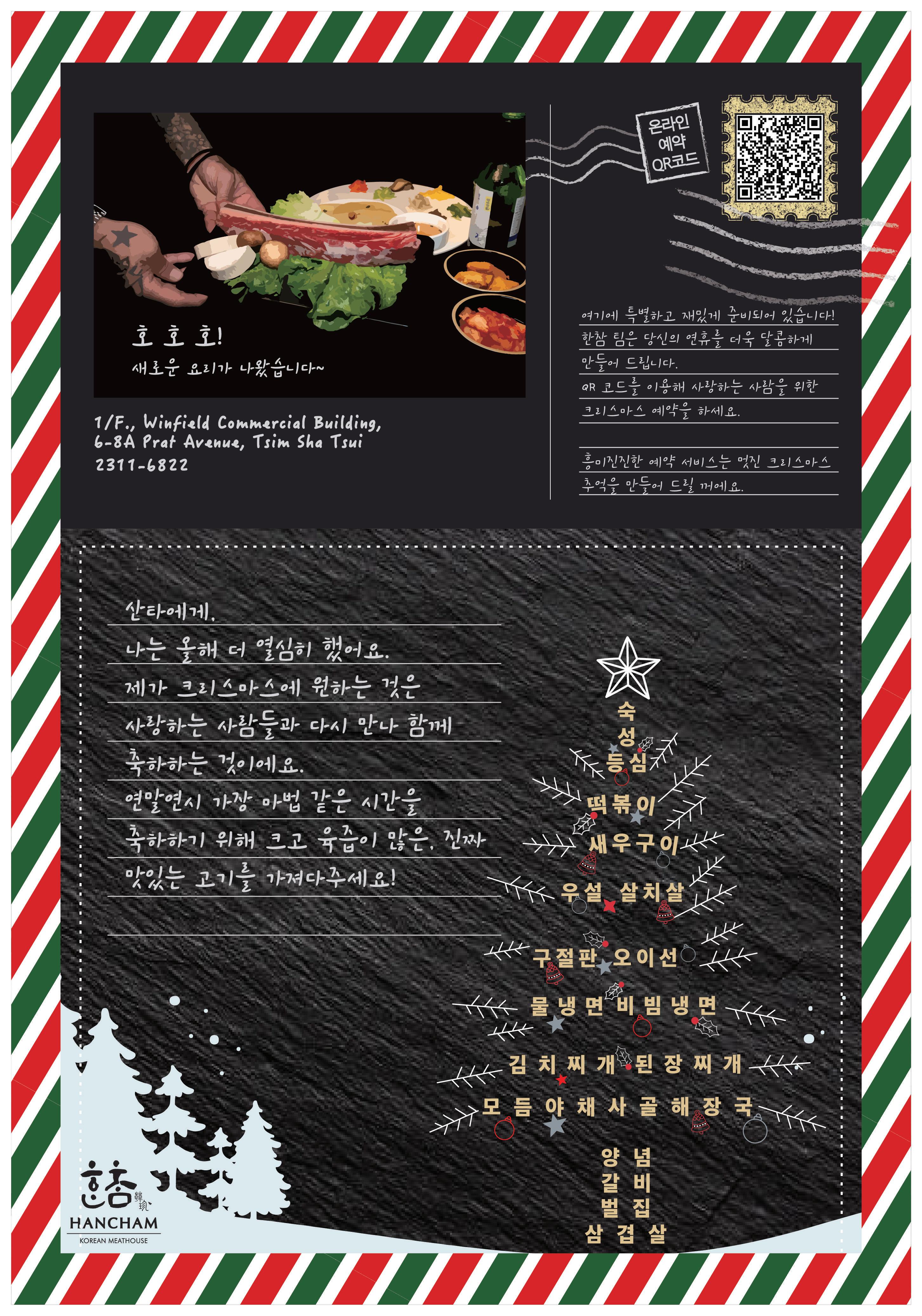 매일 직접 삶는 족발 230HKD 홍콩에서 가장 맛있는 족발이라고 소문난 집! 상추와 야채, 쌈장도 드립니다. 테이크 아웃 전용 갈비찜과 갈 비탕도 퇴근하는 아빠들이 자주 사가는 메뉴입니다. 각 종 반찬 직접 맛보고 구입하세요! 침사초이 깜바리까이 2367 8895 <봉루>가 돌아왔다! 한국의 고급 중화요리를 홍콩에서 맛보게 해드립니다! 2022년 10월 23일 재개장! 고급스러운 분위기로 완전 탈바꿈한 봉루를 만나보세요! 전화 2311-6822 간장게장 250HKD 고기가 맛있는 한참 엠파이어센터의 또다른 인기메뉴. 연평도 꽃게로 매일 담근 신선하고 맛있는 간장게장! 동해안 오징어, 통영 바다장어, 장흥 매생이, 벌교 꼬 막도 함께 즐기실 수 있습니다. 온라인예약 QR코드. 한참 엠파이어센터 2511 6316 슈퍼푸드 호두와 웰빙곡물 호밀의 만남! 호두는 예로부터 한방 약재로 쓰였으며 호밀은 밀보 다 식이섬유가 많아 혈당상승을 억제하여 다이어트에 좋은 웰빙곡물입니다. 한국 유기농빵 타르데마에서 만 나보세요! K11 MUSEA / Olypian City 3 / Popsorn 1 해운대 속씨원한 대구탕 198HKD 20년 전통의 한 자리를 지켜오면서 판매를 해 온 부 산의 명물. 속씨원 국물맛! 쫄깃쫄깃한 대구살! 부산 해운대 미포본점의 명성 그대로! 정성의 깊이가 더해 진 상상 그 이상의 맛! https://solmarket.hk/ko 올다움 플레인 요구르트 (500ml) 72HKD 올다움 한라봉 요구르트 (500ml) 84HKD 청정 제주 한라산 중턱 유네스코지정 생물권 보존지 역에서 방목되어 유기농풀을 먹고 자라는 젓소. 젓소가 자라는 환경부터 생산까지 믿고 마실 수 있 는 요구르트. 참돔+봄도다리+봄숭어 참봄봄세트 소 1200HKD 씹는 순간 담백한 맛이 일품인 봄에 더욱 맛있는 참돔! 낚시꾼들이 인정하는 단맛의 봄숭어! 단단하고 쫄깃한 맛이 일품인 봄도다리! http://pf.kakao.com/_LvFxexb 웰빙 허니갈릭 프라이드 치킨 218HKD 마늘과 허니가 만났다! 마늘의 알싸한 맛이 살아있는 달콤치킨! 어린 아이 간식부터 어른 안주용으로 인기 높은 프라이드 치킨. 테이크아웃은 오직 딜리버루에서! 생일자 이벤트 예약시 생일 표시 혹은 케잌들고 오셔서 생일 파티 하 시는분께 소정의 기념품과 팥빙수 제공해드립니다 Happy Birthday! EVENT! WEDNESDAY JOURNAL 14 • 14 DEC 2022 수요몰