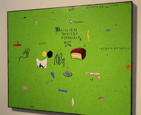 Q. 그림이 다가갈 수록 약간씩 다르게 보입니다. 겹겹이 여러번 덧칠한 것이나 작은 글씨들, 지웠다 다시 쓴 흔적들 에서 다른 느낌이 듭니다.