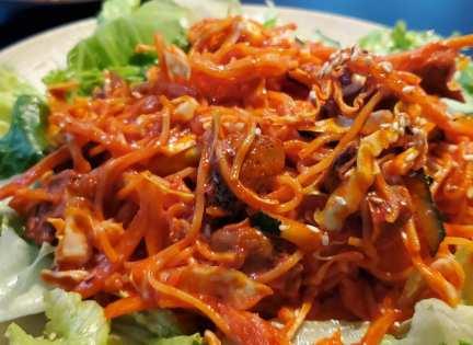 돼지고기와 껍질이 매콤하게 버무려져 젓가락을 놓을