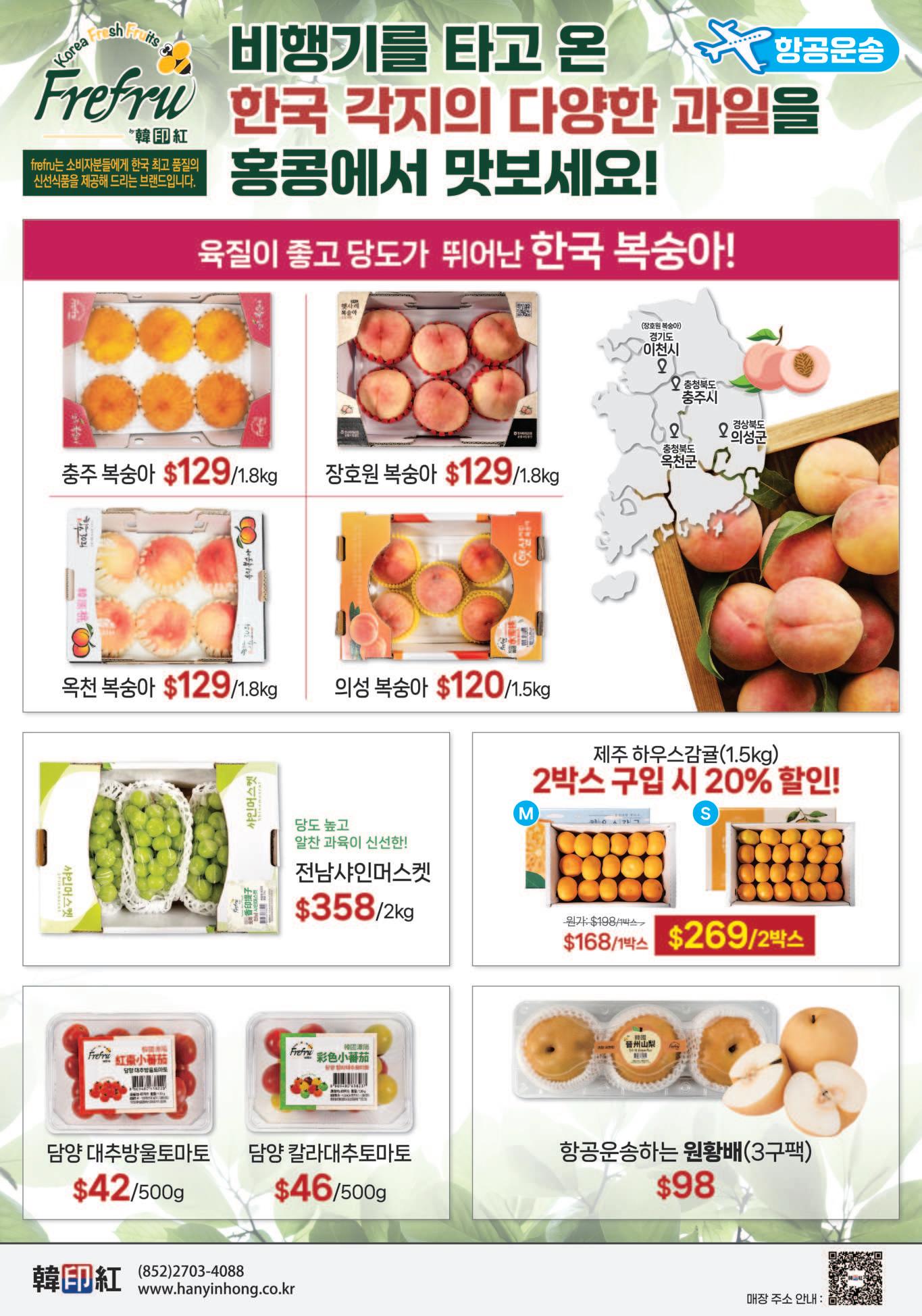 은 홍콩 현지 매장 한인홍을 방문해 복숭아 시식 및 홍보 판촉 행사에 참여했다.