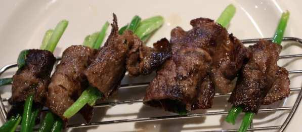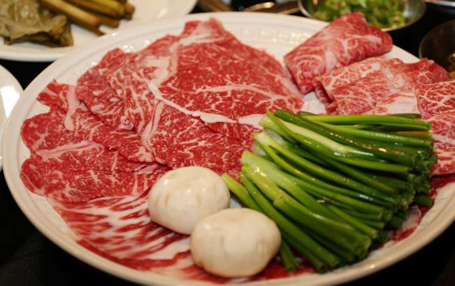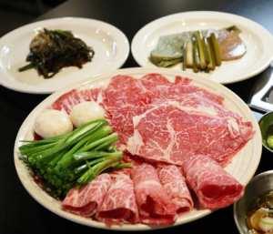 한우의 고소한 맛이 듬뿍 느껴지는 한우세트는 싱싱 한 부추와 버섯, 야채조림 등을 싸서 먹으면 더욱 입안에 더욱 황홀해진다. 몇 점 맛있게 먹고 약간 느끼해질 수 있는 순간 간장대파 소스를 꾸욱 찍어먹으면 새콤하면 서 약간 닷맛에 더욱 식욕을 돋는다.