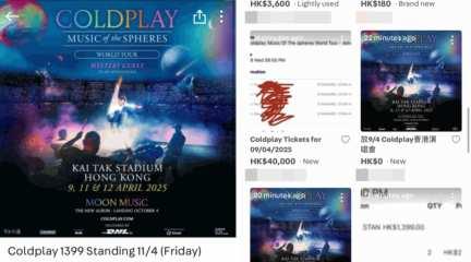 일부 재판매자는 1,399홍콩달러에 판매된 네 장의 스 탠딩 티켓을 9,000홍콩달러에 올려 놓았다.