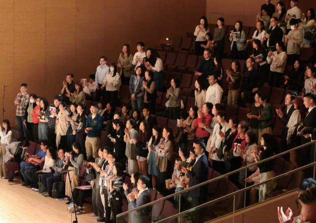 돌려보낼 수 없는 관중들이 모두 일어나 기립박수를 보내