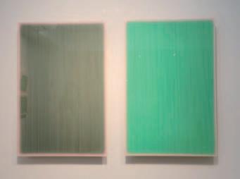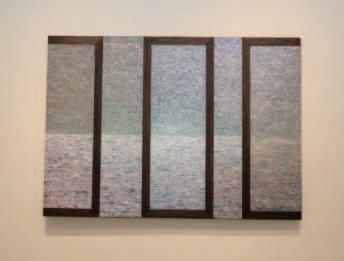 김근태 작가는 자연에서 얻은 소재를 활용하여 사물 의 물질적 속성을 끈질기게 탐구한다. 그는 유화물감에 석분(돌가루)을 접착제와 섞어 캔버스 위에 부은 후, 질