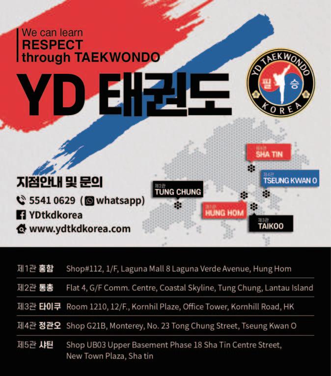 YD태권도 각 지점(샤틴, 홍함, 쩡관오, 타이쿠, 퉁청)에 소속된 수련생들과 홍콩