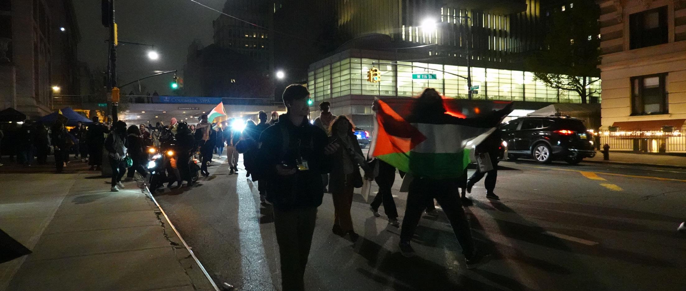 Below: Ted Schmiedeler reports from a protest on Amsterdam Ave. and 116th St. For the next few nights, protests assemble outside of Columbia, with different amounts of participants (and of police presence). Field teams walk laps around the still-locked campus to report.
