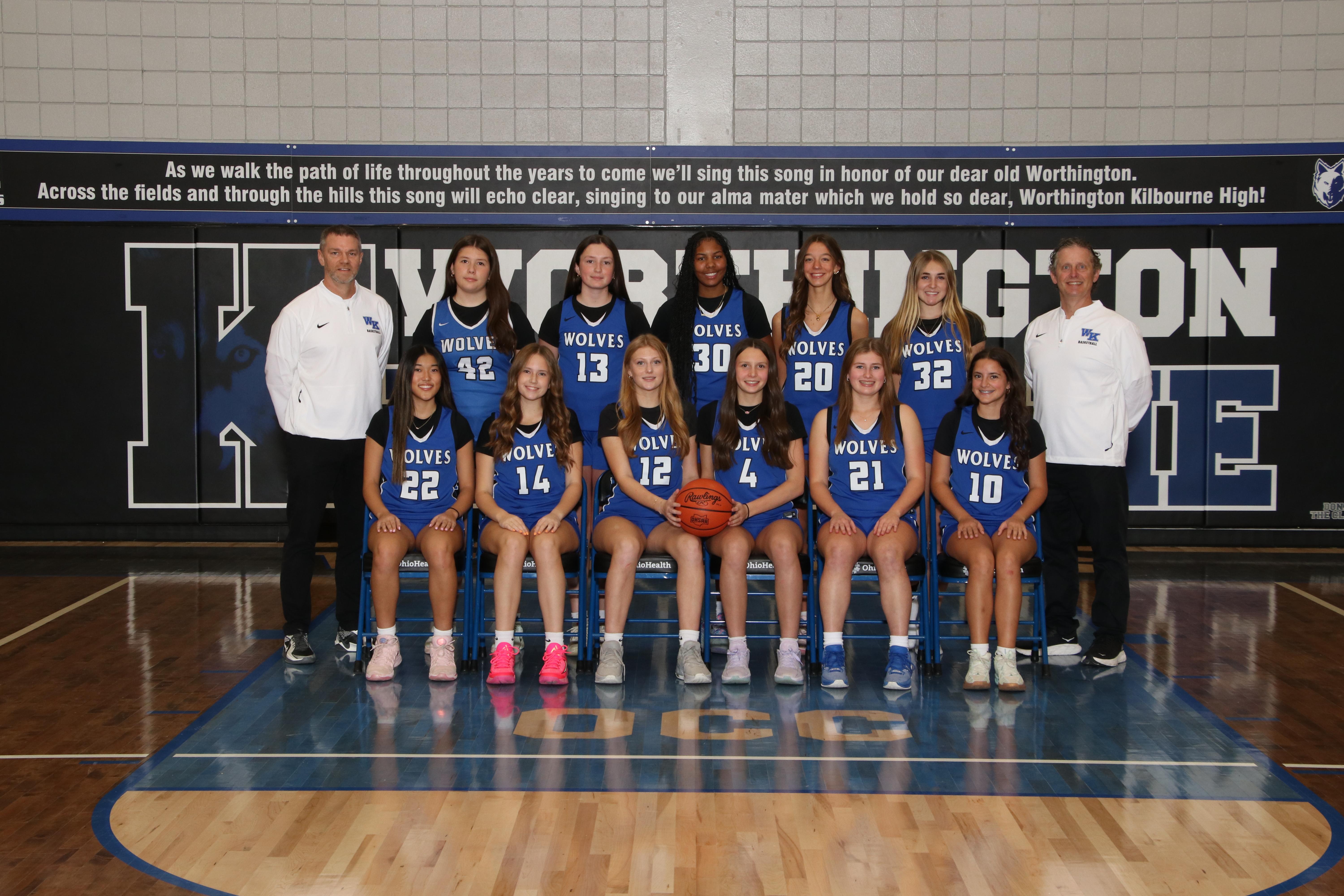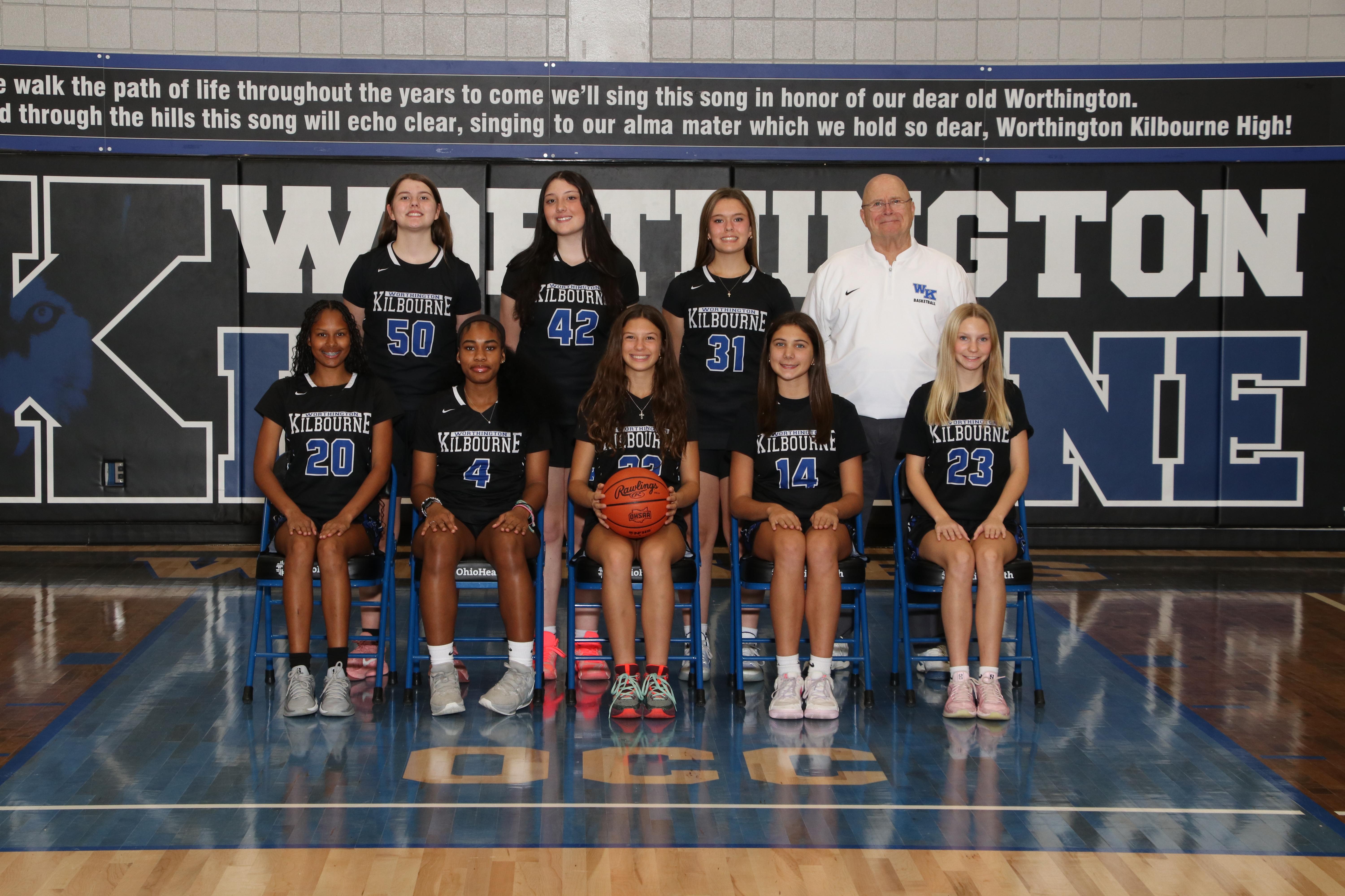 Row 2: Rebecca McClary, Lilly Drummond, Scarlet Stroud, Coach Pikovsky