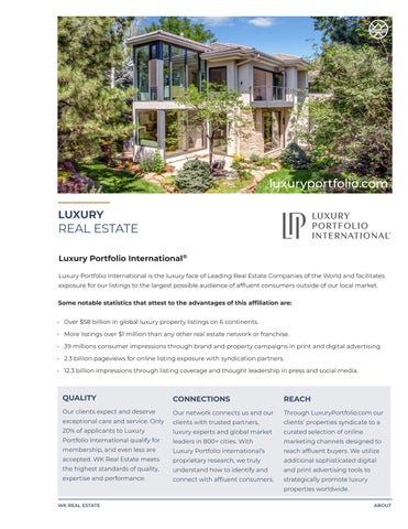 Luxury Portfolio International is the luxury face of Leading Real Estate Com panies of the World and facilitates exposure for our listings to the largest possible audience of affluent consum ers outside of our local m arket