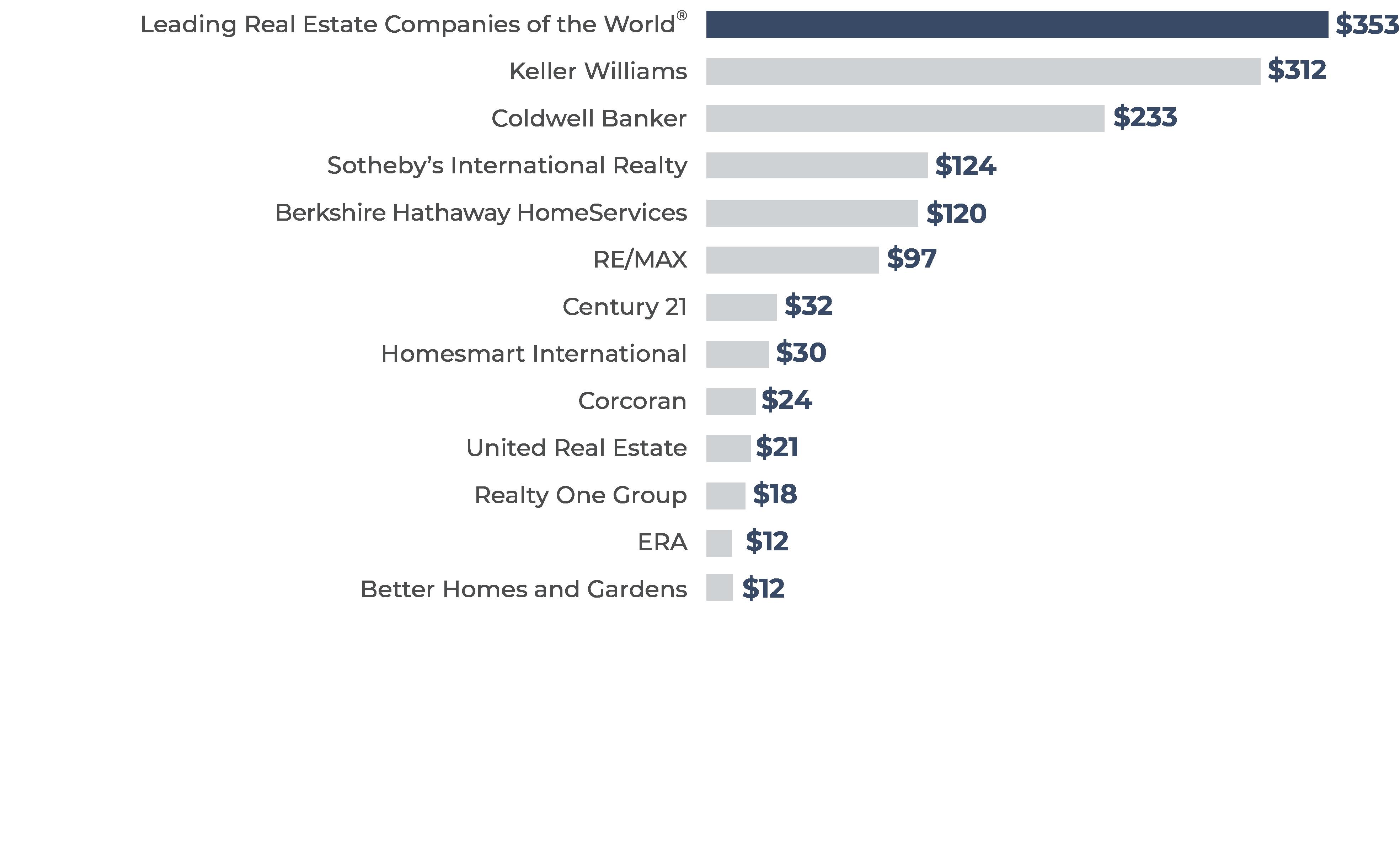 Volum e sh ow n in b illion s of d ollars Th is bar ch art is sourced from REAL Tren d s 500 for 2022, realt ren d s com More US Hom e Sales Volum e t h an any Nat ion al Real Est at e Bran d