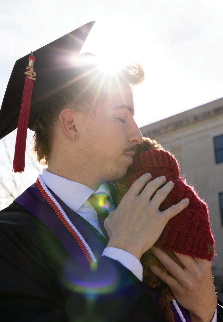 Above, Sheldon Martin, a biology major and business administration minor, holds his new puppy as he stands in front of Cherry Hall. Martin plans to get a doctorate in physical therapy at Bellarmine University in Louisville. “Something I will miss about WKU is having my best friends so close to me all the time, but I am excited to move to Louisville and make new memories with my pup, Rose,” Martin said.