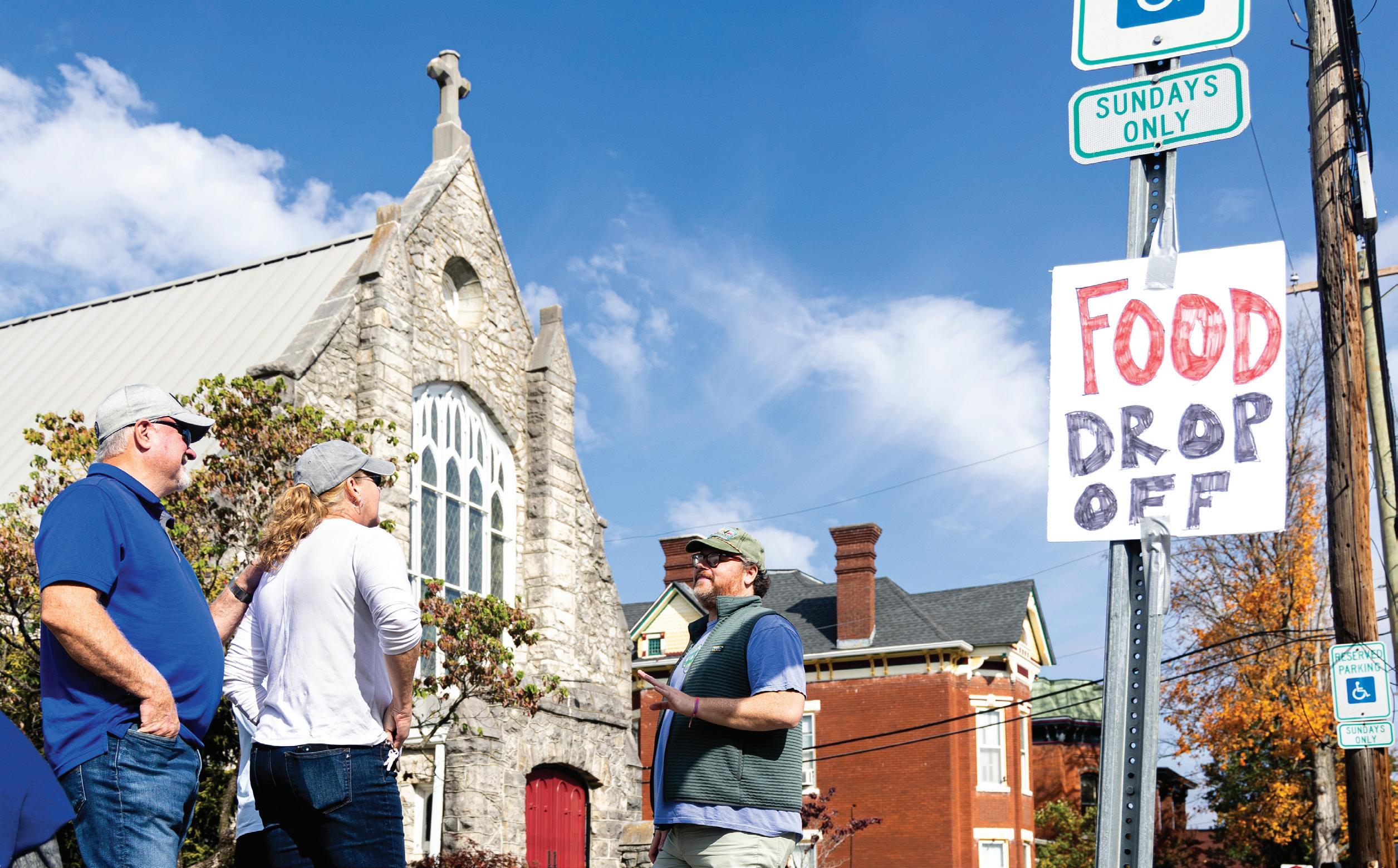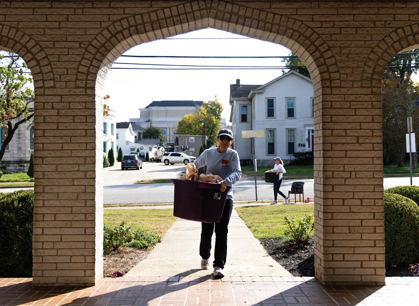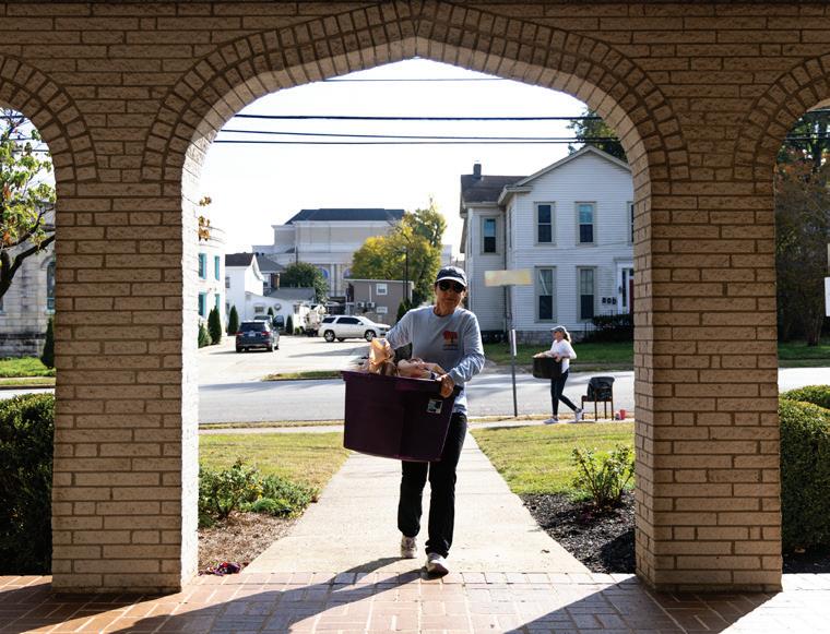 BOTTOM: Retired WKU public health professor Dr. Cecilia Watkins helps to bring donations into the lobby of Christ Episcopal Church during the Warren County Democratic Party’s food drive on Saturday, Nov. 8, 2025.