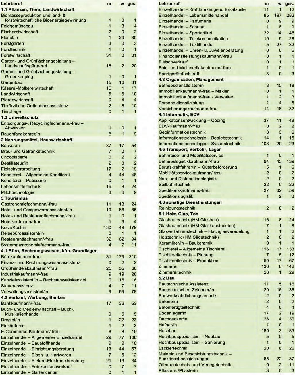 Rolle der Eltern 7 Die wichtige Rolle der Eltern 9 ABC der Ausbildungspflicht 10 Duale Ausbildung 1 3 Fragen, die Eltern beschäftigen 14 Die 4 Phasen der Berufswahl 1 6 Gute Gründe für die Lehre 17 Wilfried Hopfner & Christoph Jenny: „Die Lehre ist vielfältig“ 18 Fünf Gründe für eine Lehre 1 9 Verein Lehre in Vorarlberg 20 Das Talent zum Beruf machen 23 Erste Einblicke in die Arbeitswelt 25 #schnuppern23 - Info per Video 26 Schnuppern - Einblicke in die Berufswelt 27 Keine Lehre ohne Schule 28 Die Lehrabschlussprüfung 29 Schlechte Noten 3 1 Der erste Zahltag 32 Mein Kind, seine Lehre und ich 33 Mein erstes Geld 34 Vorarlberger Lehrlinge über ihr Geld 35 Engagierte Ausbildungsbetriebe 43 Ausgezeichnete Lehrbetriebe 45 Ausbilder:innen erfüllen wichtige Aufgaben 47 Die Lehre aus der Sicht der Ausbildenden 4 8 Die Lehre ist chancenreich 49 Die Lehre als „Türöffner“ 53 Lehre mit Matura 56 Der perfekte Weg für michInterview mit Sophia Wachter 57 Erfogsstory - „Vom Lehrling zur Salonleitung“ Nicole Neyer und Sarah Stöckler im Gespräch 58 „Ich war schon immer technikbegeistert!“Interview mit Michelle Waldner 60 D uale Akademie 65 Österreichs bester VerkaufslehrlingInterview mit Emanuel Säly & Harald Rudigier 66 Auf geht‘s in technische Berufe, Mädels! 72 Bunte Berufswelt 77 Lehrberufe in Vorarlberg 78 „Hi, Tech Girl“ 81 Die iMesse: Rückblick und Ausblick 82 Individuelle Beratung 89 BIFO: Leistungen & Beratungsangebote 90 Potenzialanalyse | Karrierecheck 92 Regionale Lehrlingsinitiativen 95