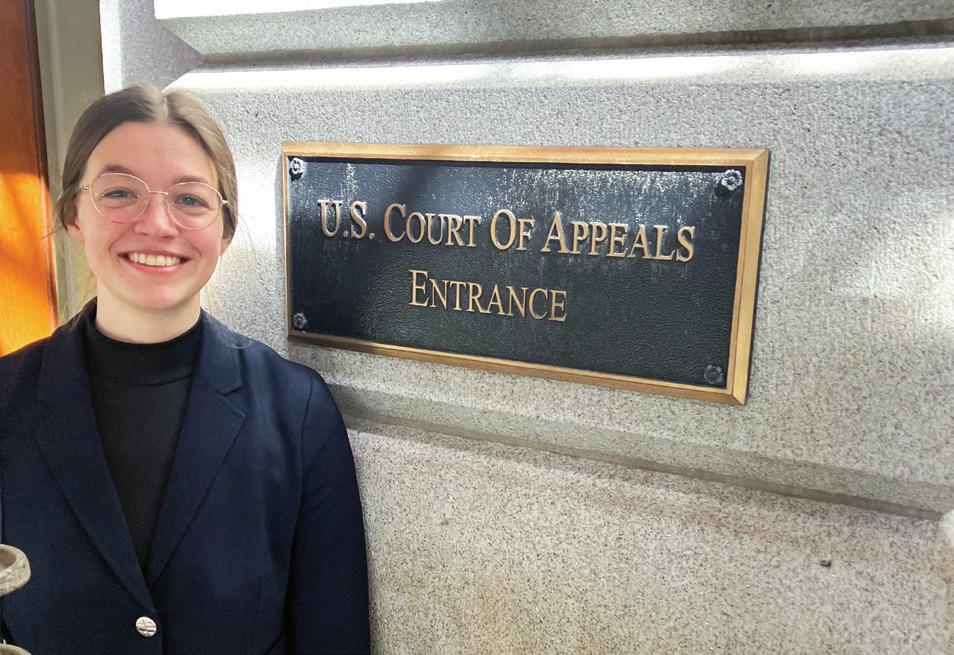 appealed to the Fourth Circuit by the clinic. Burgess’ preparation for what would be her first ever court appearance was extensive. She put in about 175 hours working on the case, including mastering the extensive case file and its complicated medical evidence. She wrote two dozen drafts of her oral argument, which she recorded and played back to herself while running so her narrative would be etched in her brain. Numerous moot court arguments with different W&L law professors helped her refine her argument and prepare for the different ways the judges might push their inquiry.