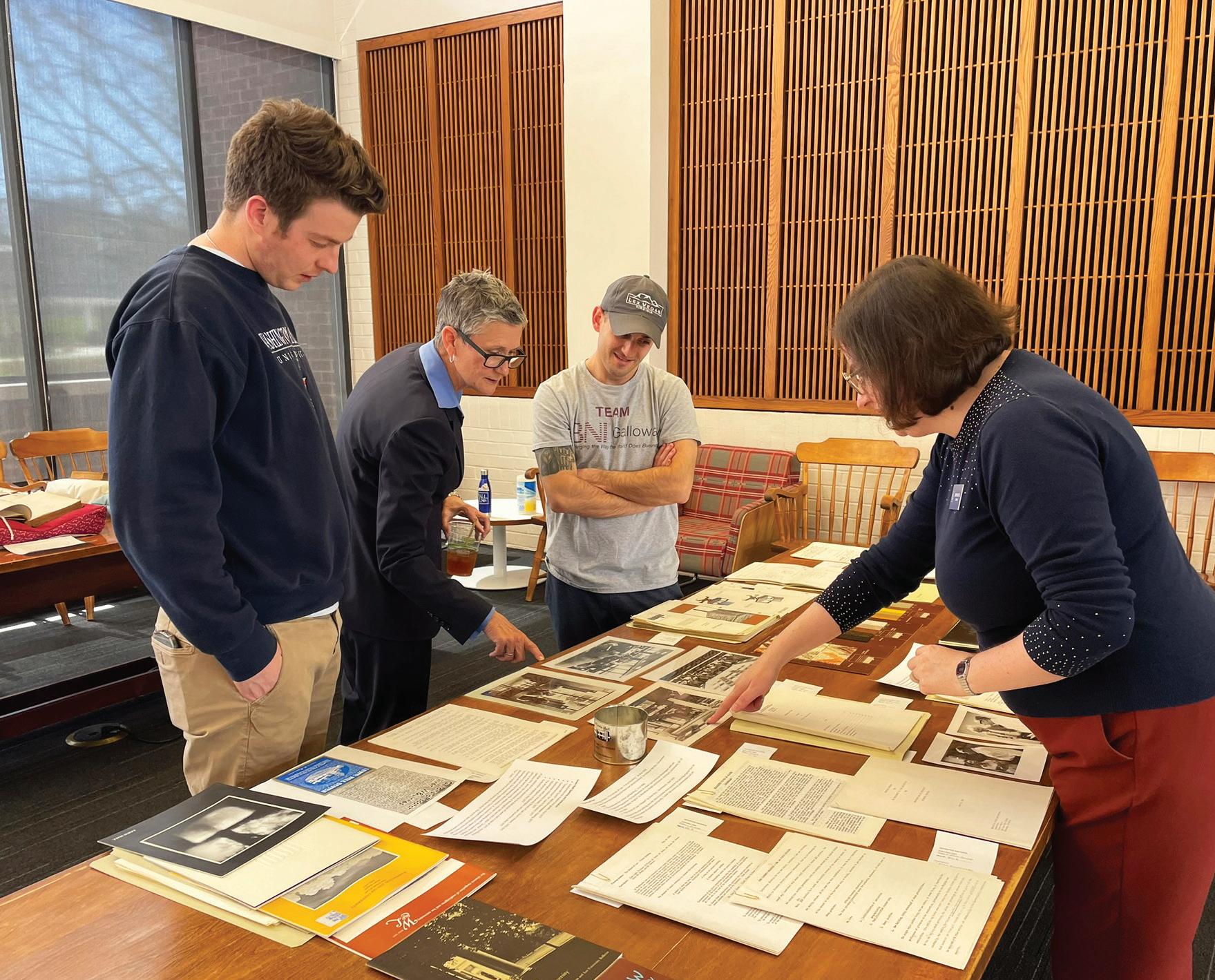 ince 2021, a small group of W&L staff and faculty have met regularly to discuss a topic close to the heart of the library: book history. Started by Caleb Dance, associate professor of classics, and eagerly supported by University Library staff and faculty, the Book History Teacher-Scholar cohort has been generously funded by the Office of the Dean. Over lunch, cohort members share updates on their book history research, show off new acquisitions in Special Collections or brainstorm class project ideas.