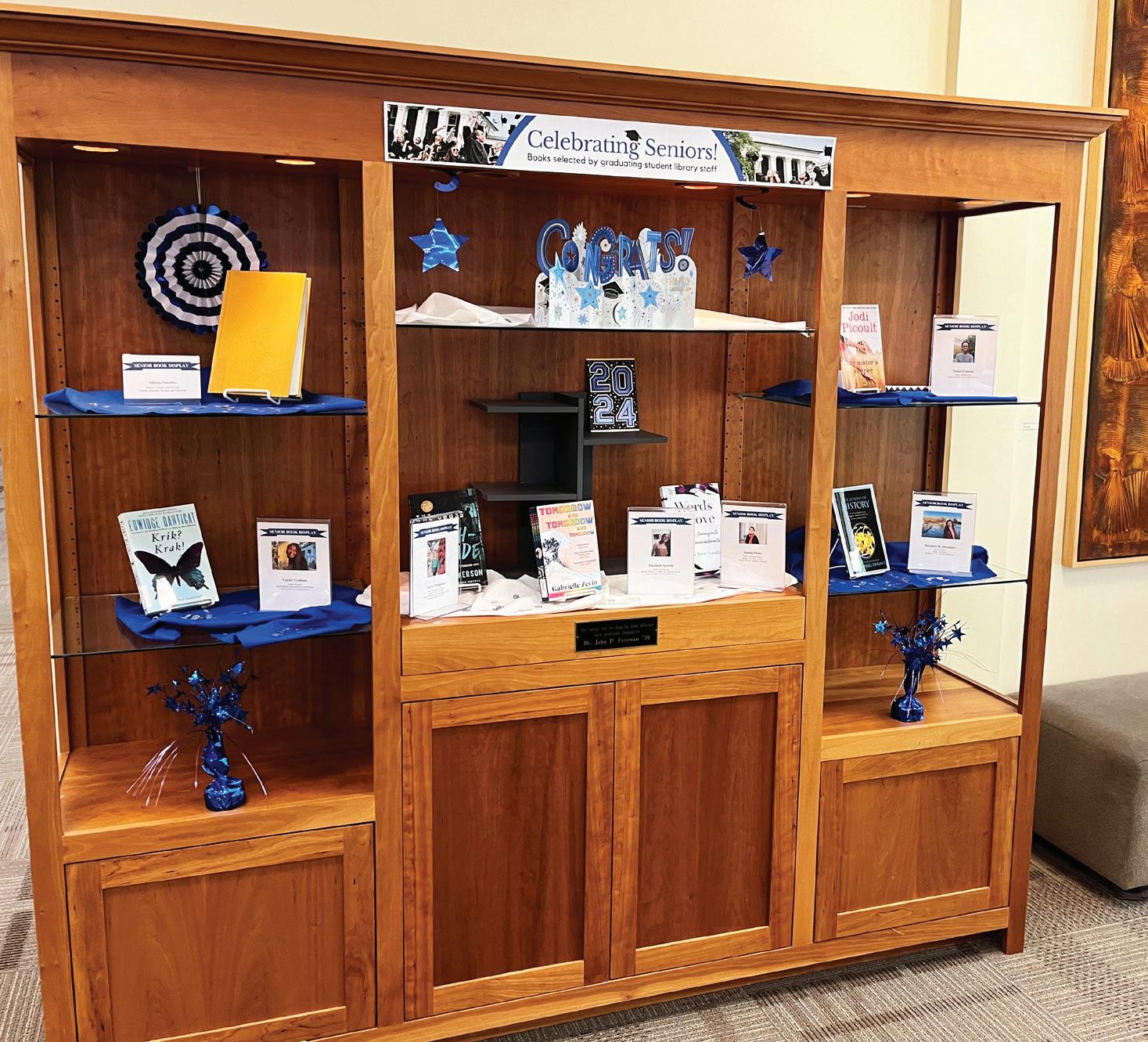 relocated game zone. Last year, the game zone was a new addition to the library that LSAB helped organize. This year it has doubled in size. In the center of the main floor, students have a space to do puzzles, play chess or other games or enjoy the Leyburn-themed coloring books along with other supplies in the new craft zone that has been added. Thanks to a gracious gift from the Friends of the Library, power outlets were put in so students can use the game zone and charge their devices, drawing more people to the space. To help fund various projects, LSAB held two book sales. A cart was set up to collect donations throughout the school year. Then, during weekends with heavy alumni traffic, LSAB set up successful book sales. Using the funds generated, LSAB was able to have a Valentine’s Day craft station with options to share what books people loved, create a book display called “Unwrap a Mystery Match,” which is similar to the popular trend of “Blind Date with a Book,” and added more art to study rooms throughout the building to make the library feel homier for students.