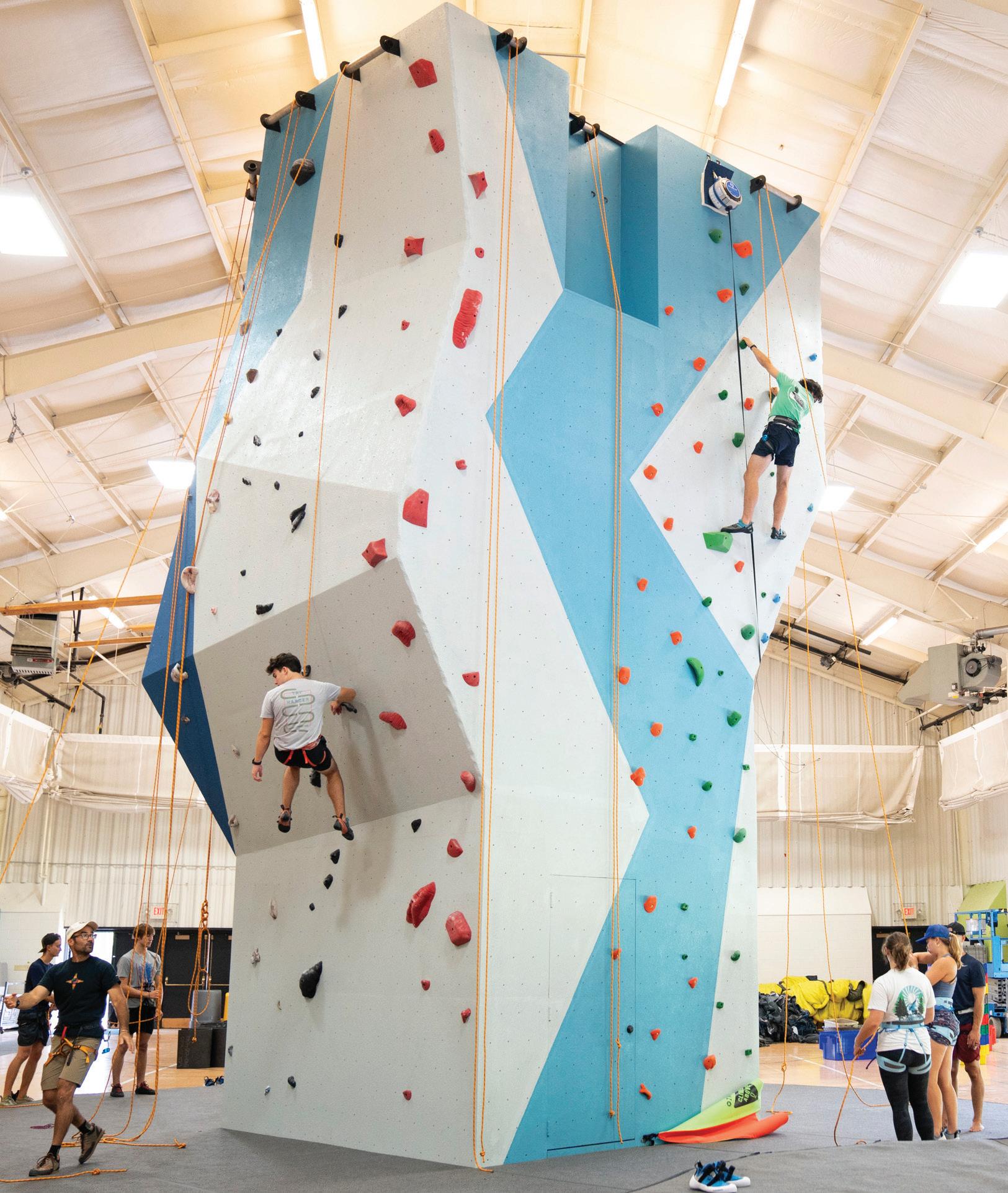 It’s time to climb! In September, the Outing Club debuted a new amenity: the Rock Wall. Two large structures — one for traditional climbing, and the other for bouldering — are located in the Outing Club Pavilion on the back campus.
