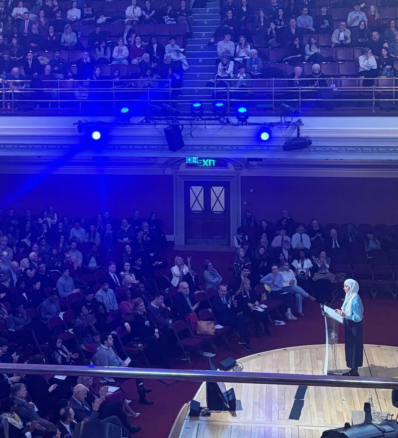 UN Young Rapporteur Maya Ghazal speaking to the afternoon crowed at Methodist Central Hall Westminster, London