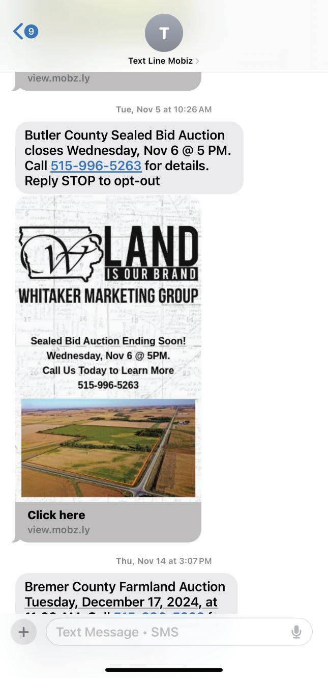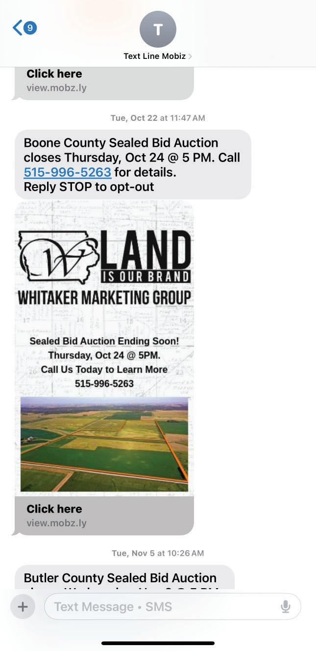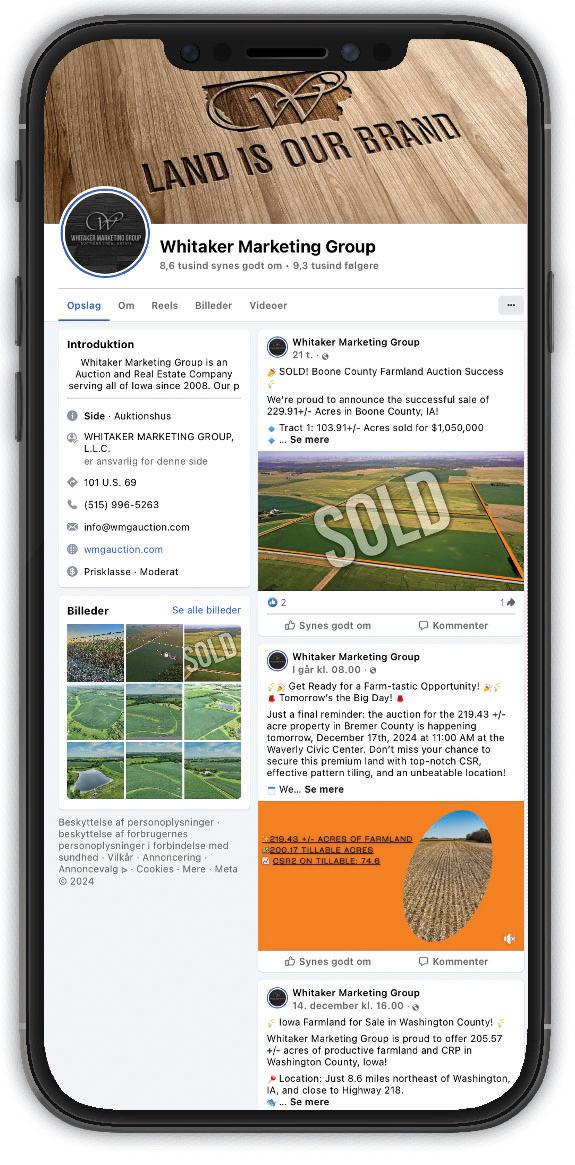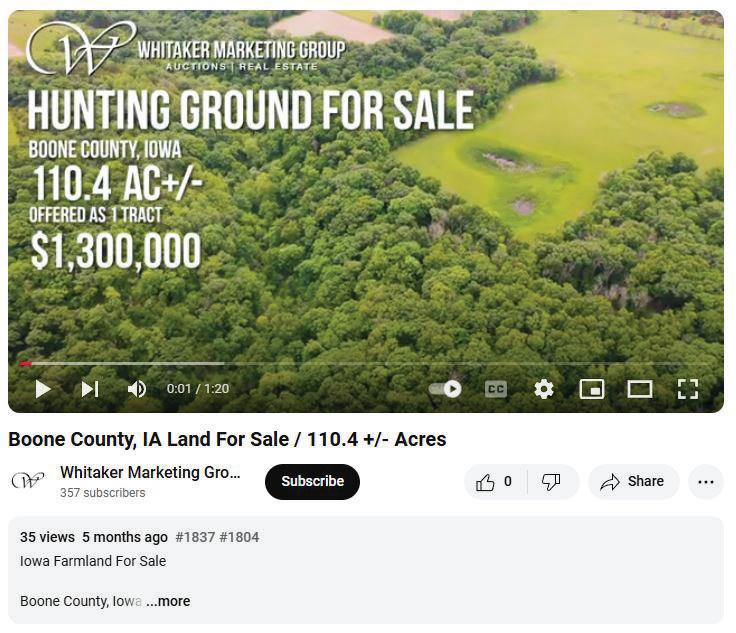 Whitaker Marketing Group’s website gets visitors from the entire country and beyond. Our industryLeading website includes downloadable FSA maps, Soil maps, Plat maps, aerial photography, drone videos of each farm, interactive site map, and links to all farms that are for sale in Iowa.