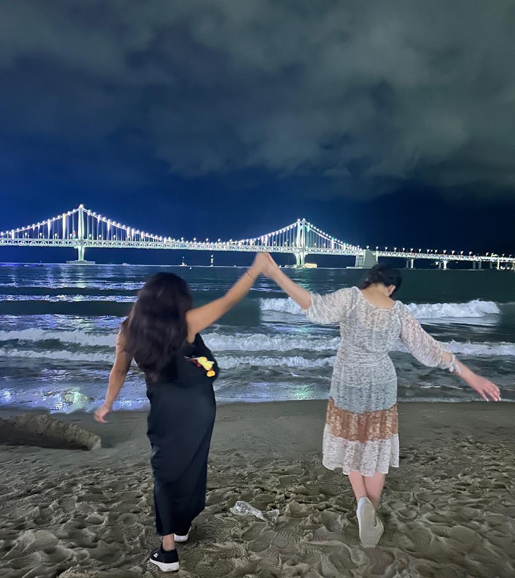 Left: In Kiribati in Dec 2022. Ambassador Damour is seated with her back to the camera and wearing a floral covered head with my back to the camera. The dancer is Miss Kiriabti, 2022. Right: At a waterfall in Taveuni, Fiji, October 2024. (Courtesy photos)