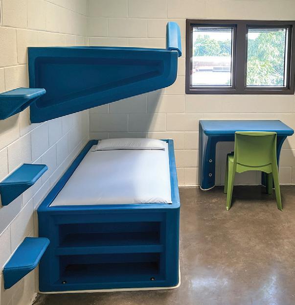 the facility wherever possible, and using lighter, more natural building materials to create a sense of calm. Adding to staff wellness, the administrative section of the building will include a gym for corrections and law enforcement staff, along with offices, conference rooms and meeting areas.