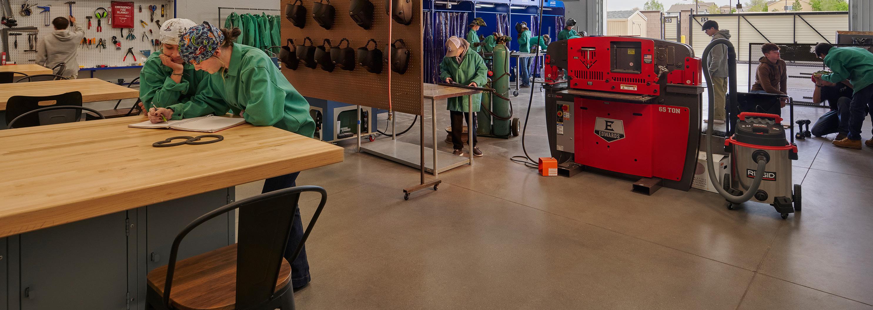 To fully engage students and provide a higher level of instruction, instructional spaces should mimic real-world work environments and provide real-world experience. This can be achieved in part by selecting building materials similar to what would be found in professional workshops, labs and other working environments.