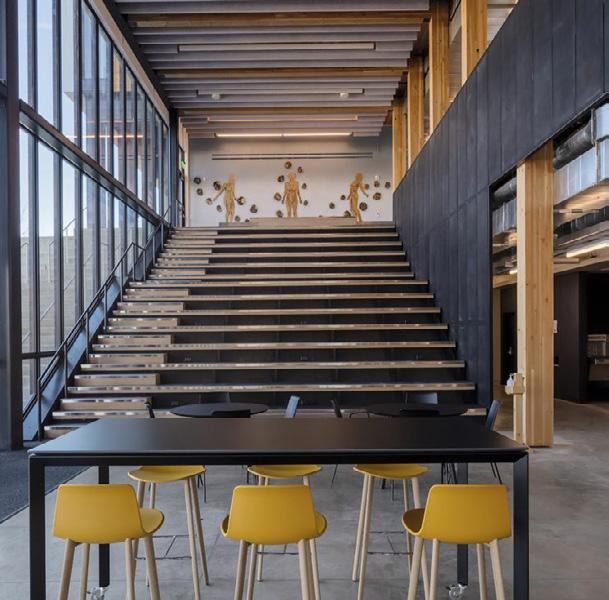Each learning community has its own classrooms, lockers, restrooms, collaboration areas, student intervention and support areas, and staff resource areas as well as a flex café that serves as a cafeteria and multipurpose space. Between the two separate schools is a two-story ‘central spine’ common area. Located off the spine are shared amenities such as the library, art and music rooms, Career and Technical Education areas, the gymnasium and the fitness center.