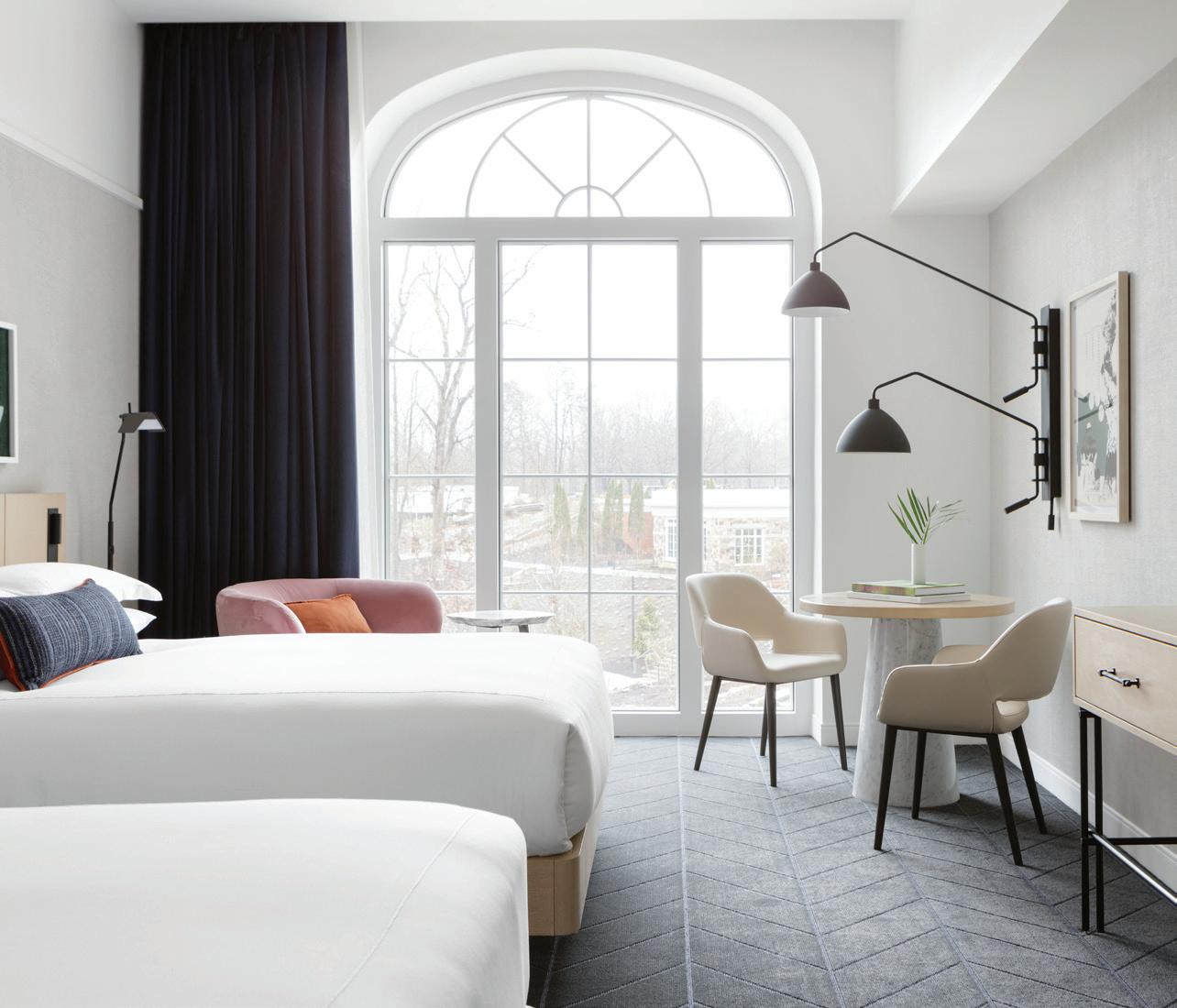 Dining options include the Coffee Bar, bars in the lobby and on the rooftop and their signature restaurant, Maple & Pine. Meeting spaces include the mezzanine, gallery courtyard, rooftop and two interior meeting rooms. The Quirk Gallery and Gallery Store feature art exhibitions of innovative work by both established and emerging artists.